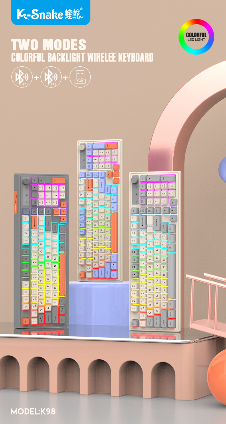 Viper K98 무선 블루투스 듀얼 모드 기계적 느낌 키보드 패션 컬러 매칭 오피스 빛나는 게임 컴퓨터 키보드스토어 가기