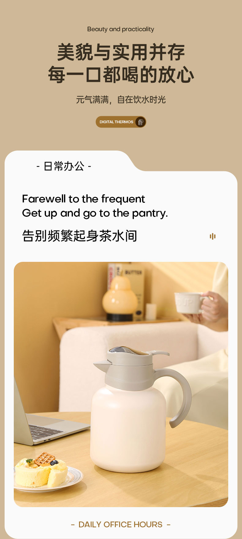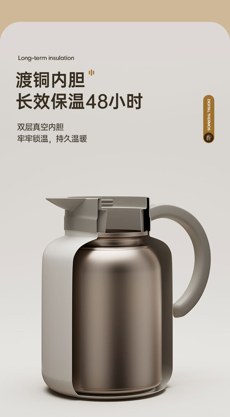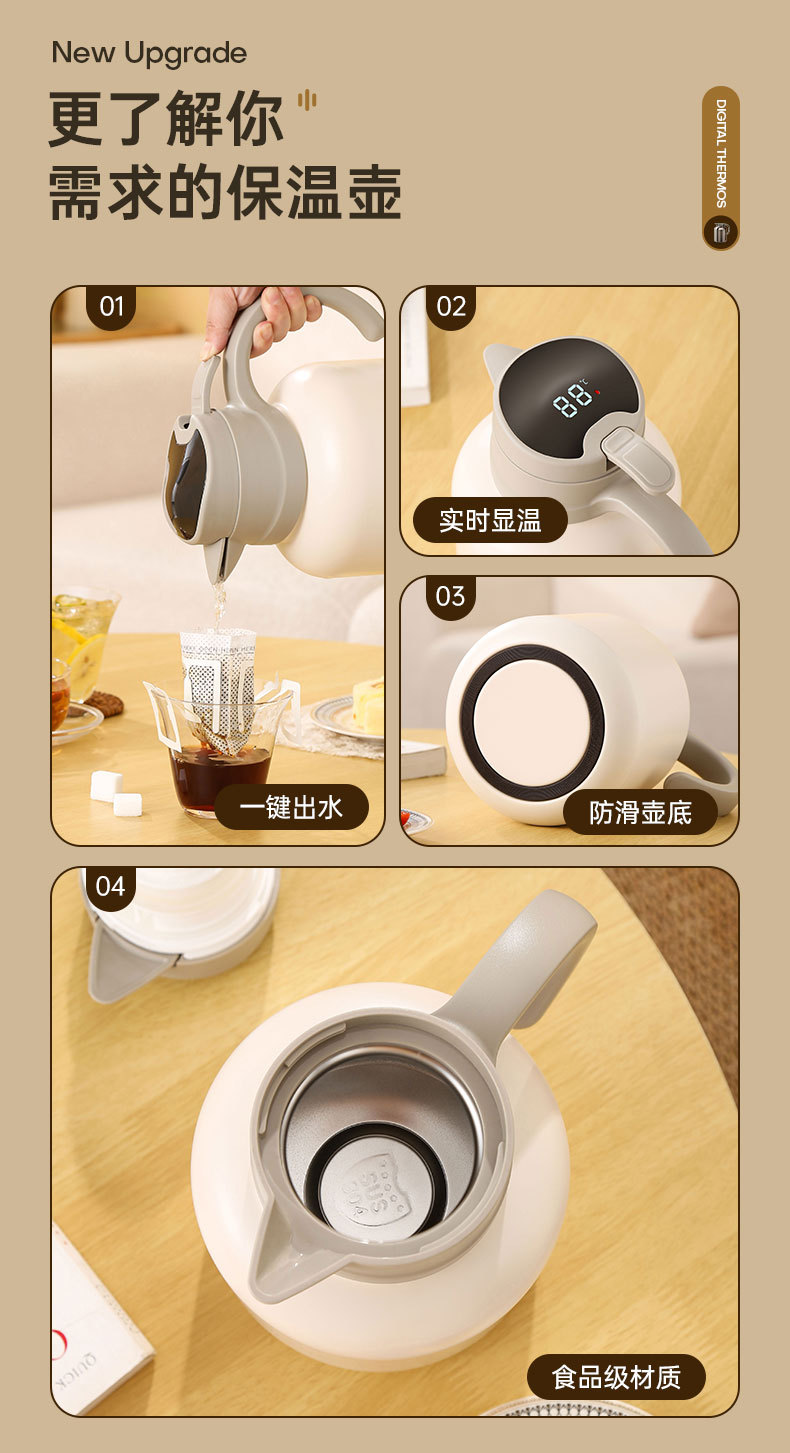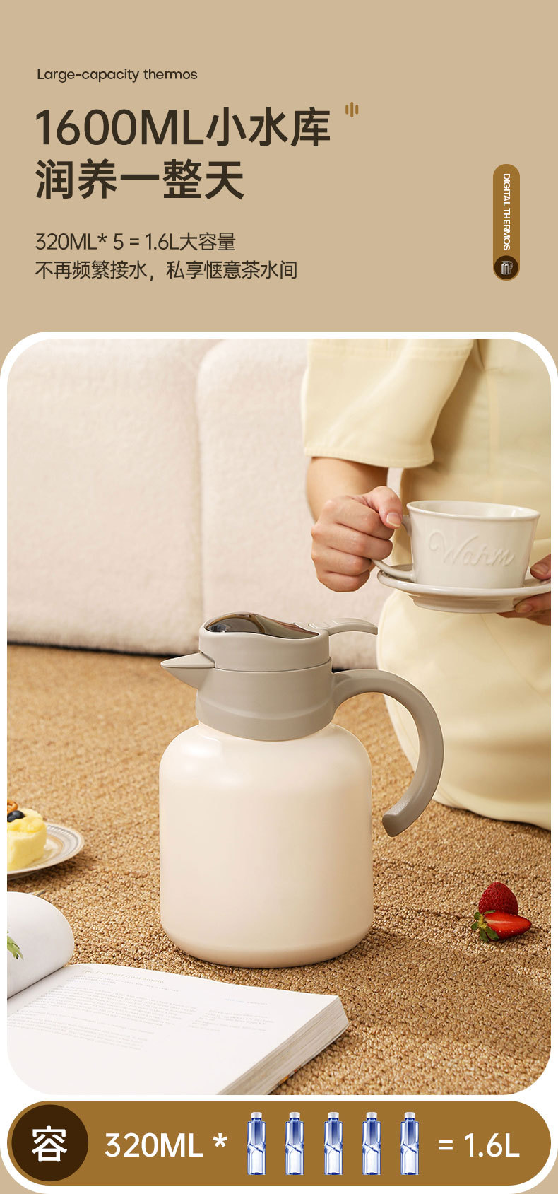 304 스테인레스 스틸 보온병 유럽식 진공 지능형 디스플레이 온수 주전자 기숙사 가정용 대용량 모호한 냄비 도매