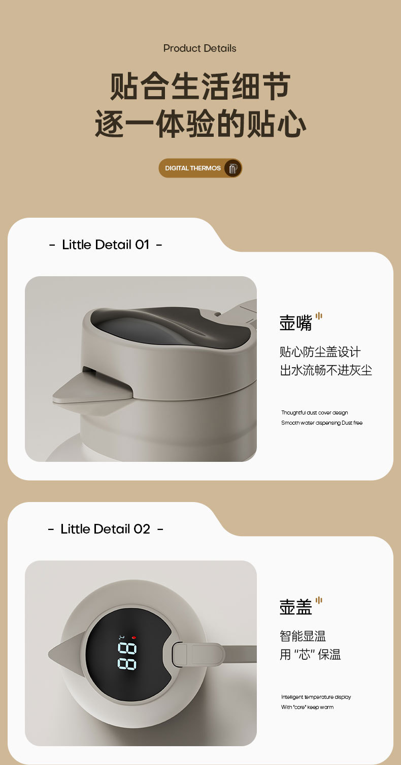 304 스테인레스 스틸 보온병 유럽식 진공 지능형 디스플레이 온수 주전자 기숙사 가정용 대용량 모호한 냄비 도매스토어 가기