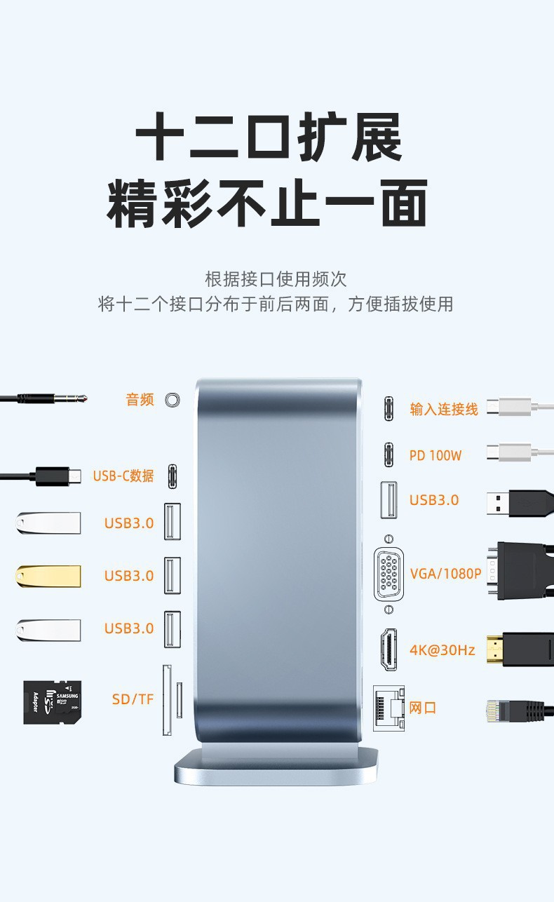모든 기능을 갖춘 typec 도킹 스테이션, 충전 가능, 화웨이 및 애플에 적합, 다중 인터페이스 변환기, USB 허브스토어 가기