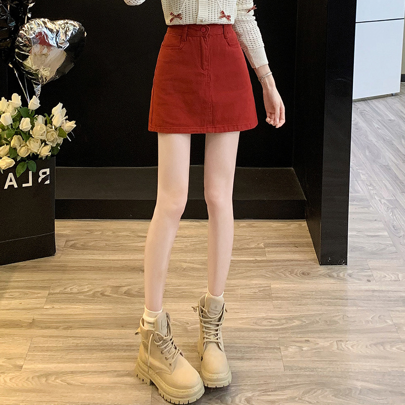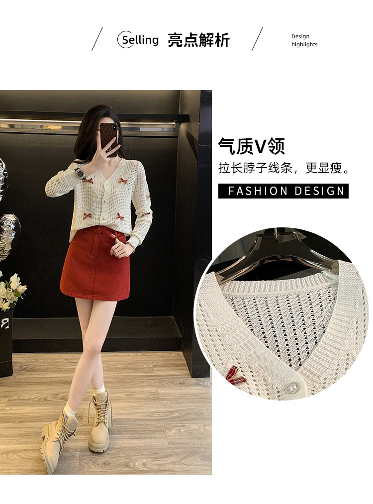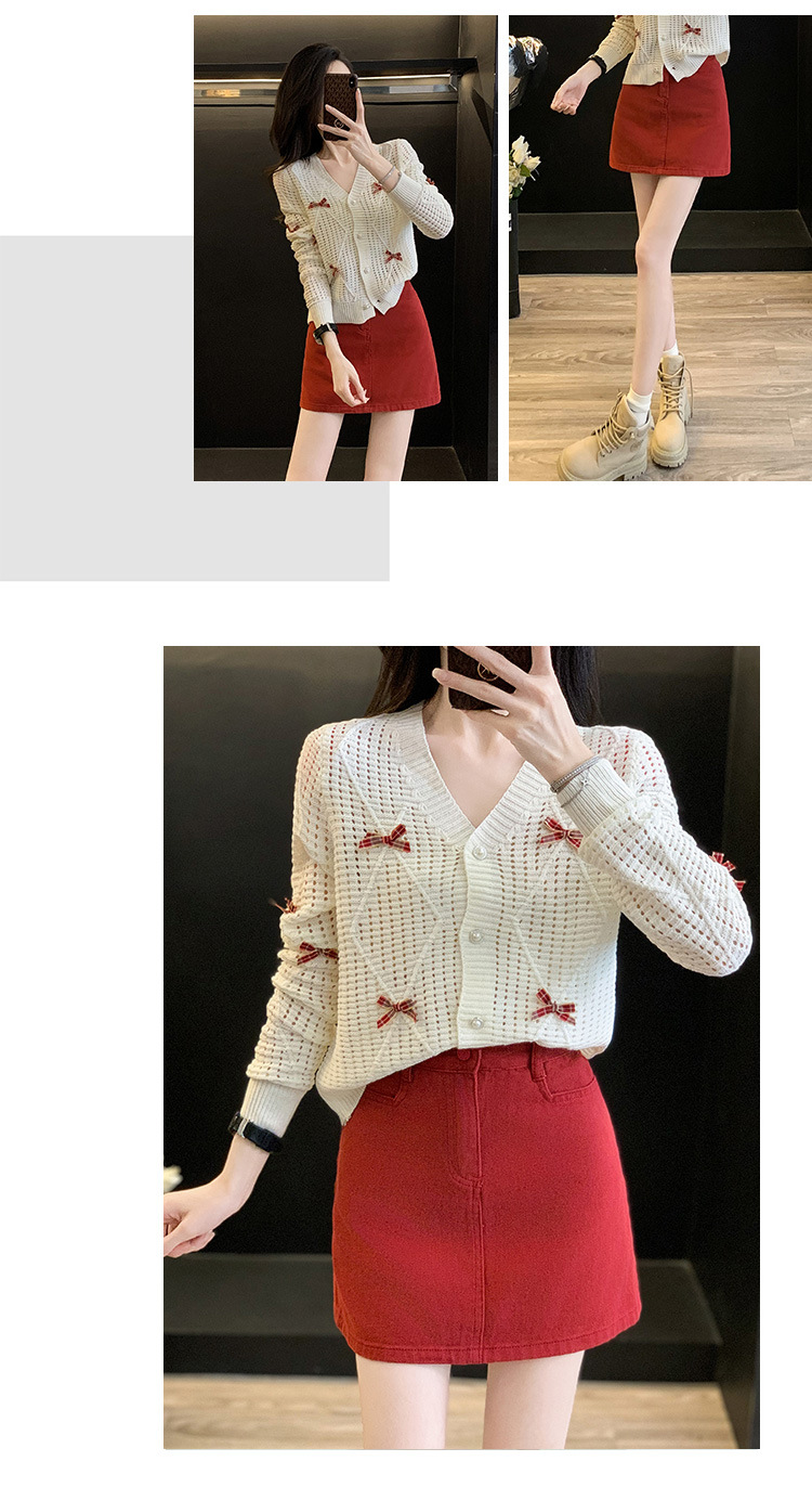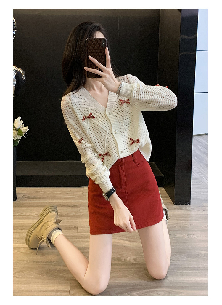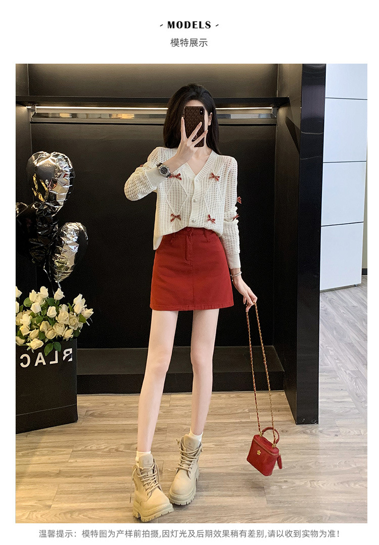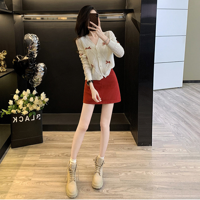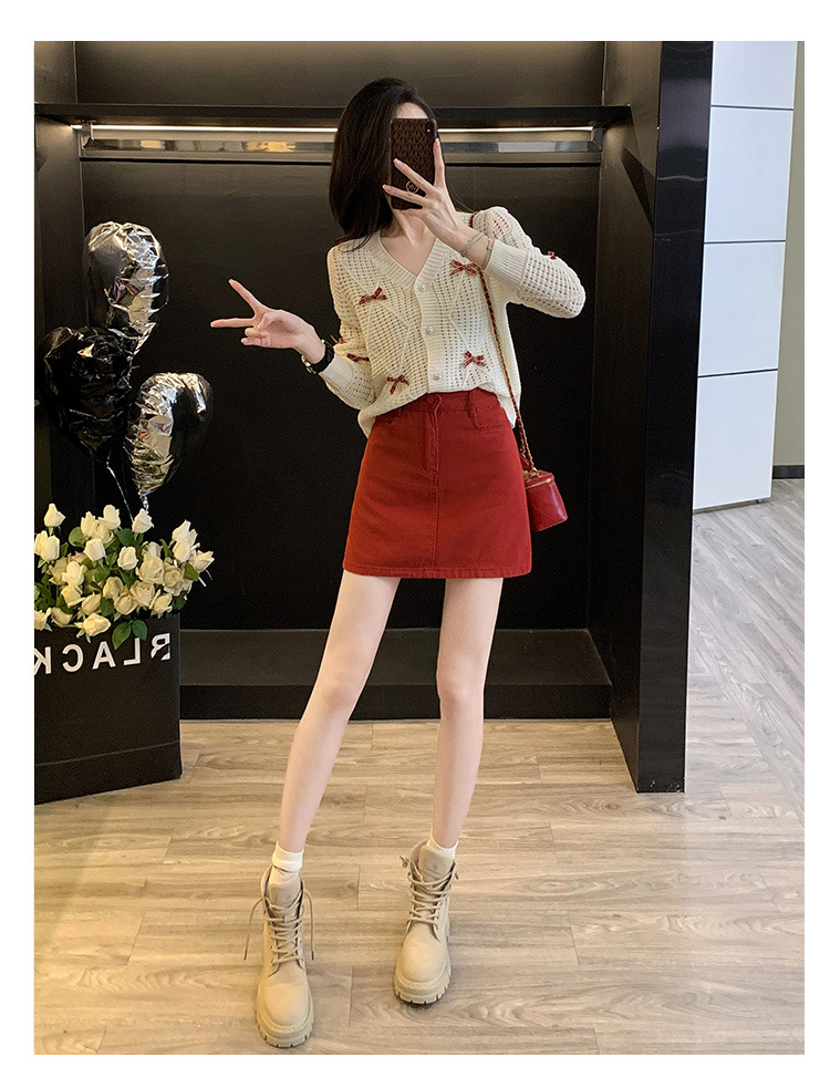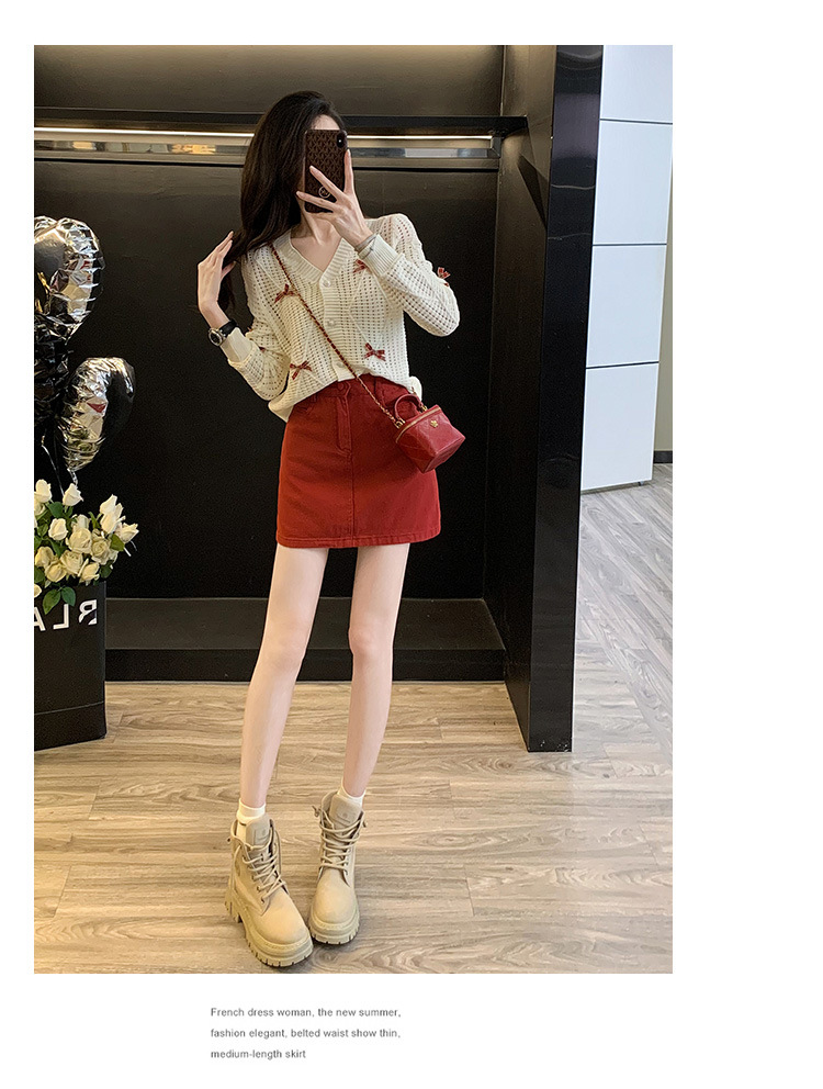 2024 새로운 우아한 작은 슬림 핏 슬리밍 패션 도파민 니트 긴팔 데님 짧은 치마 세트 여성 패션스토어 가기