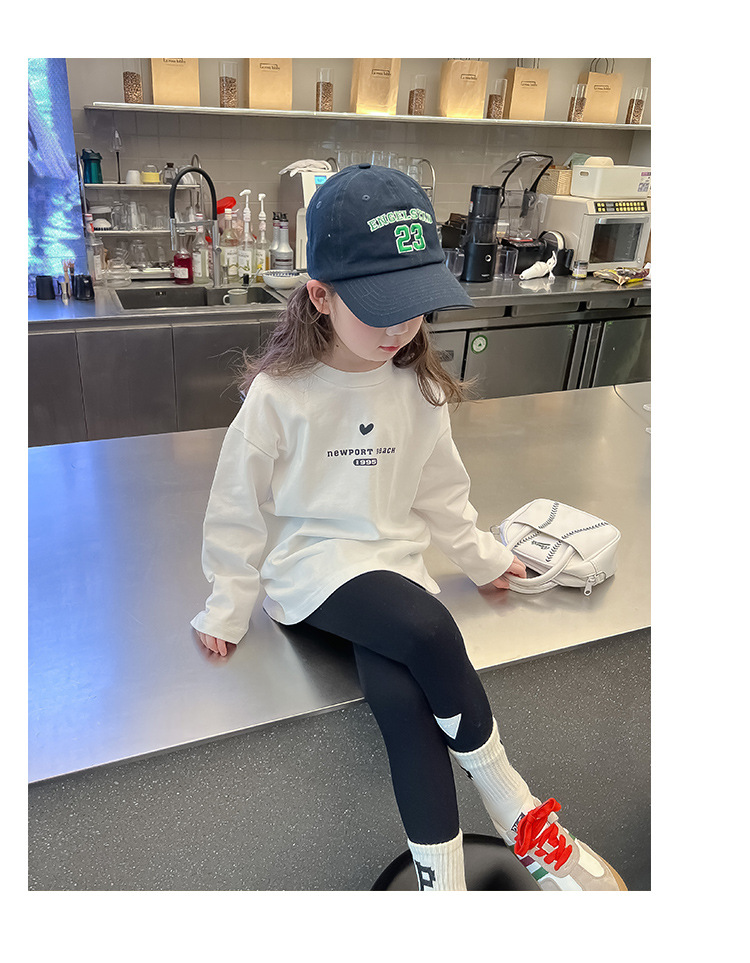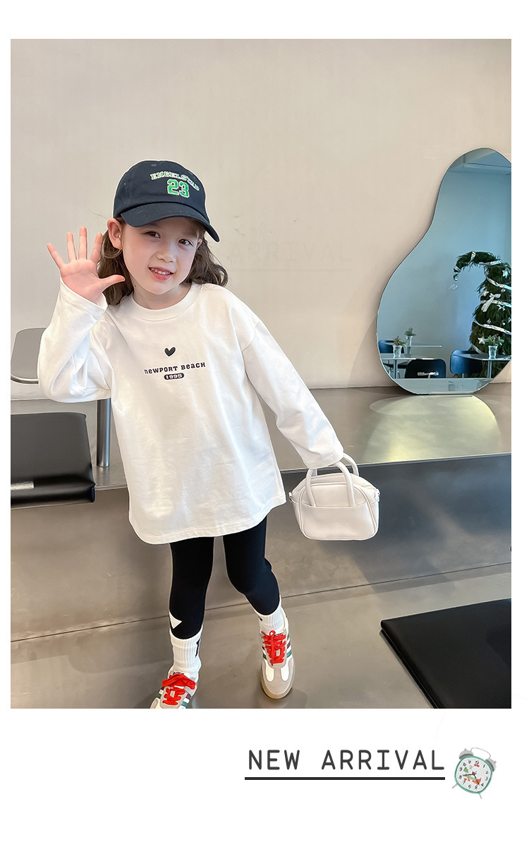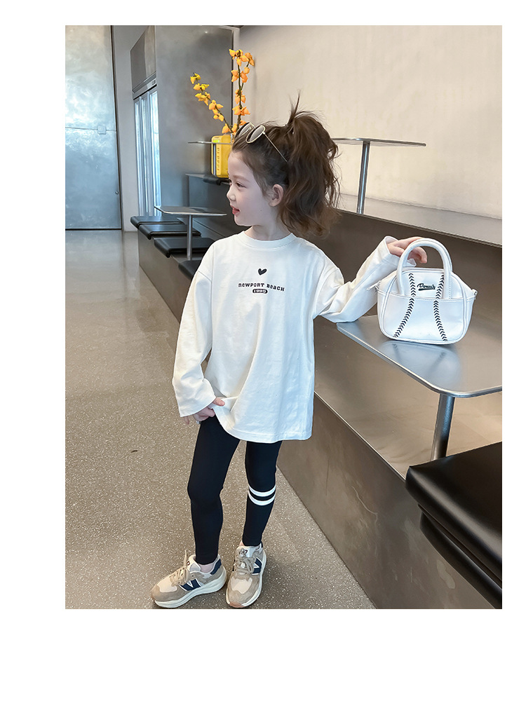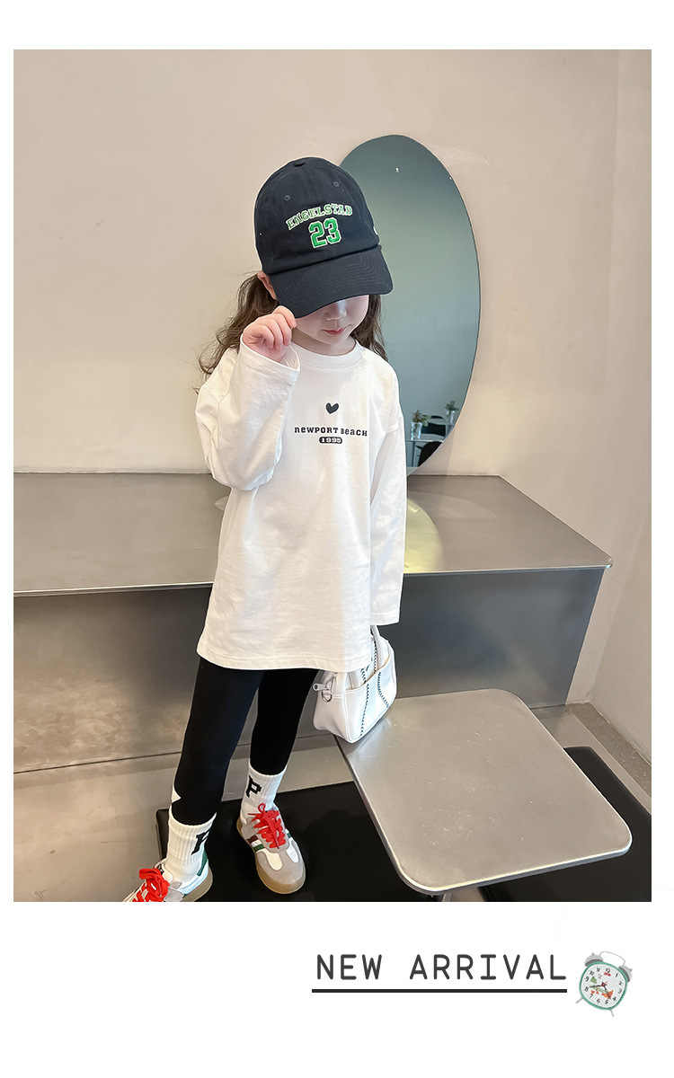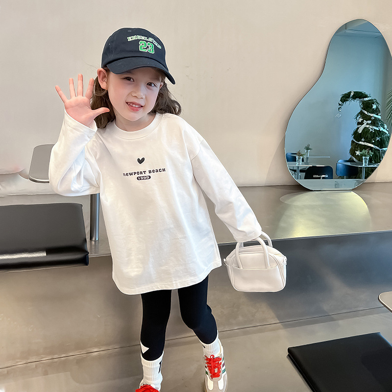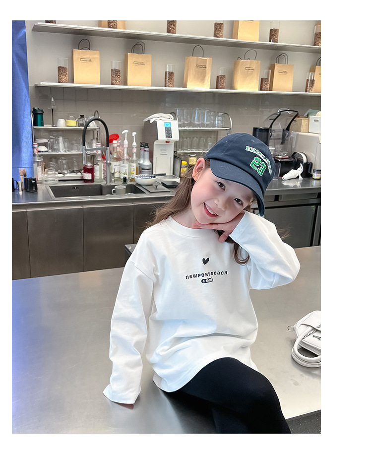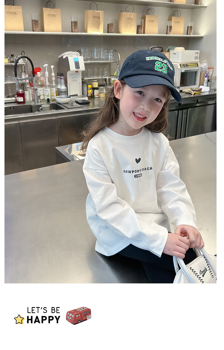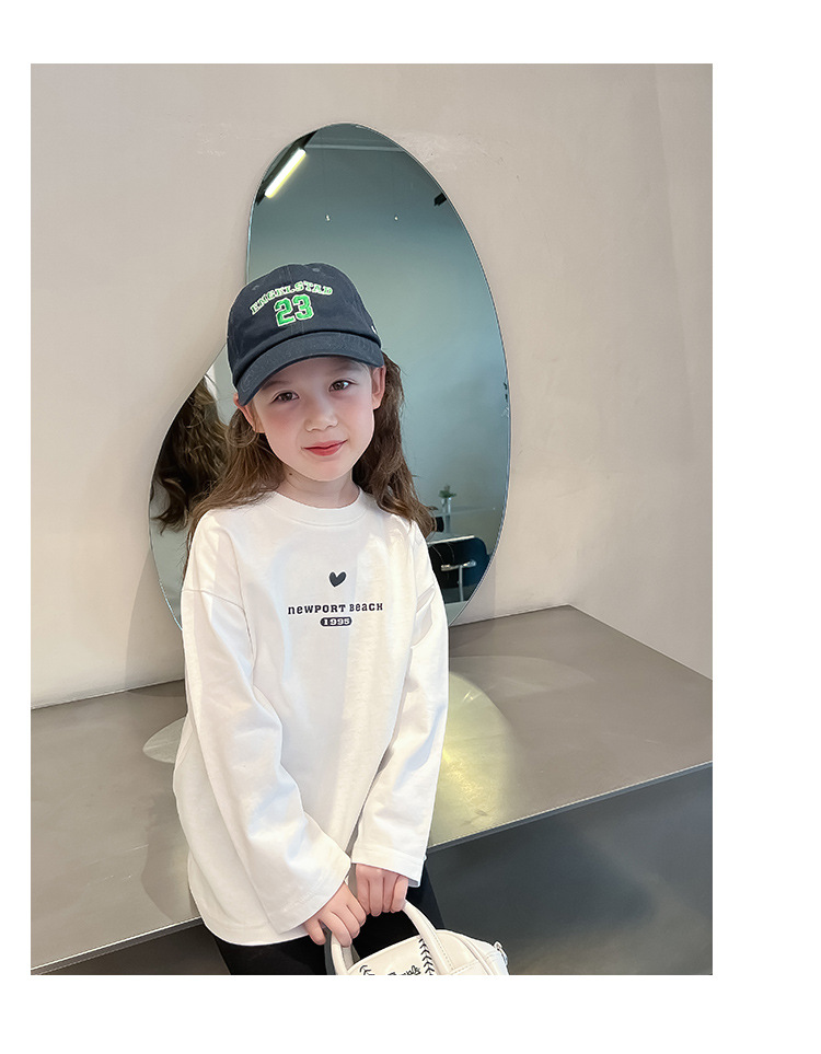 [백 칼라] 2024 봄과 가을 새로운 긴 소매 티셔츠 대형 어린이와 소녀 편지 인쇄 캐주얼 대외 무역 정상