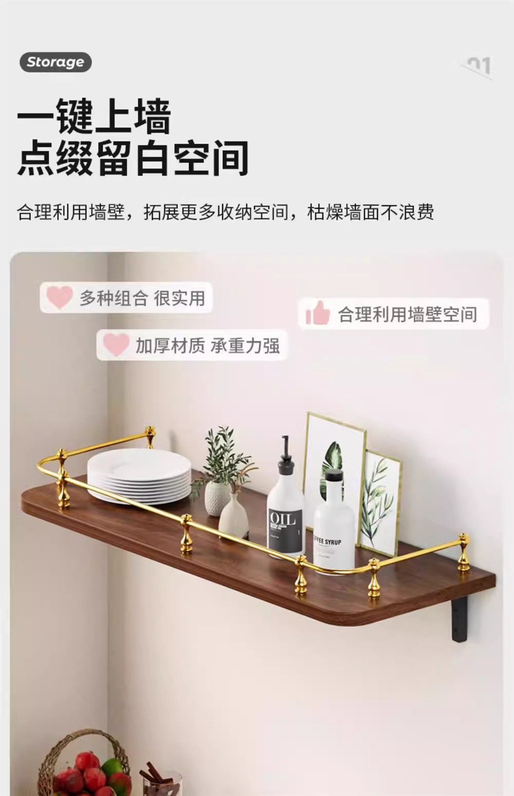 홈 장식 디스플레이 랙 나무 다층 창조적 인 벽 선반 벽 긴 한 단어 파티션 교수형 선반