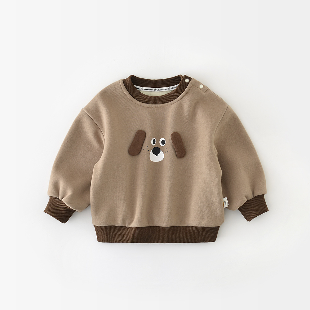 아기의 따뜻한 두꺼운 스웨트 셔츠 어린이 가을과 겨울 만화 원피스 벨벳 탑 아기의 기모 귀여운 외출 옷스토어 가기