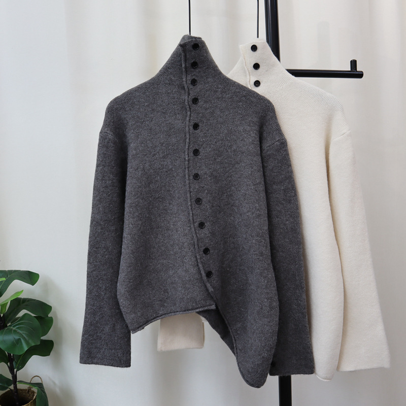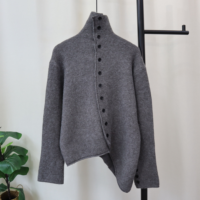 유럽 역 고급 우아한 니트 카디건 2024 가을과 겨울 새로운 디자인 감각 불규칙한 스웨터 코트 여성 패션스토어 가기