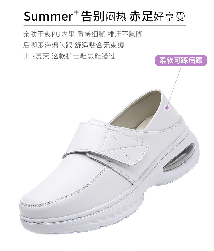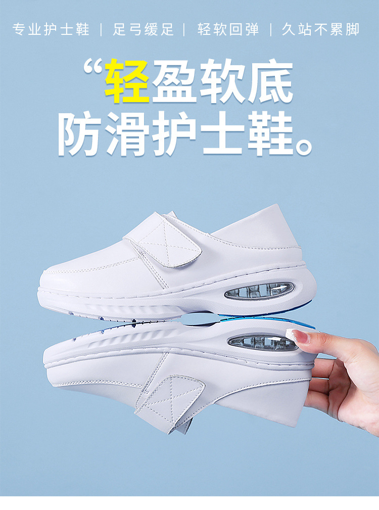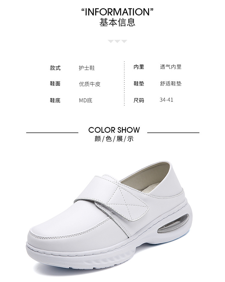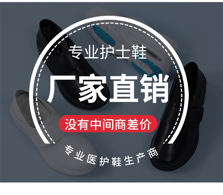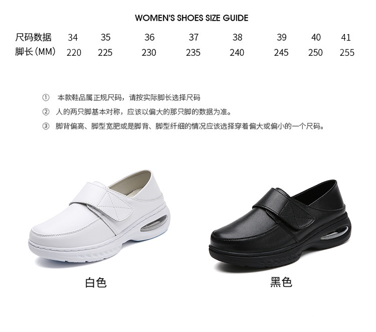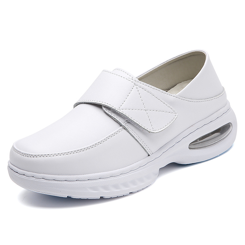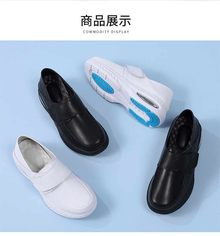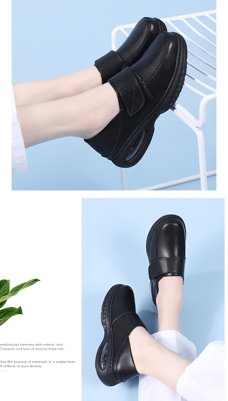 가을 겨울 간호사 신발, 천연 가죽 여성용 에어쿠션 소프트 밑창 통기성 미끄럼 방지 검정 작업화 도매 및 직배송스토어 가기