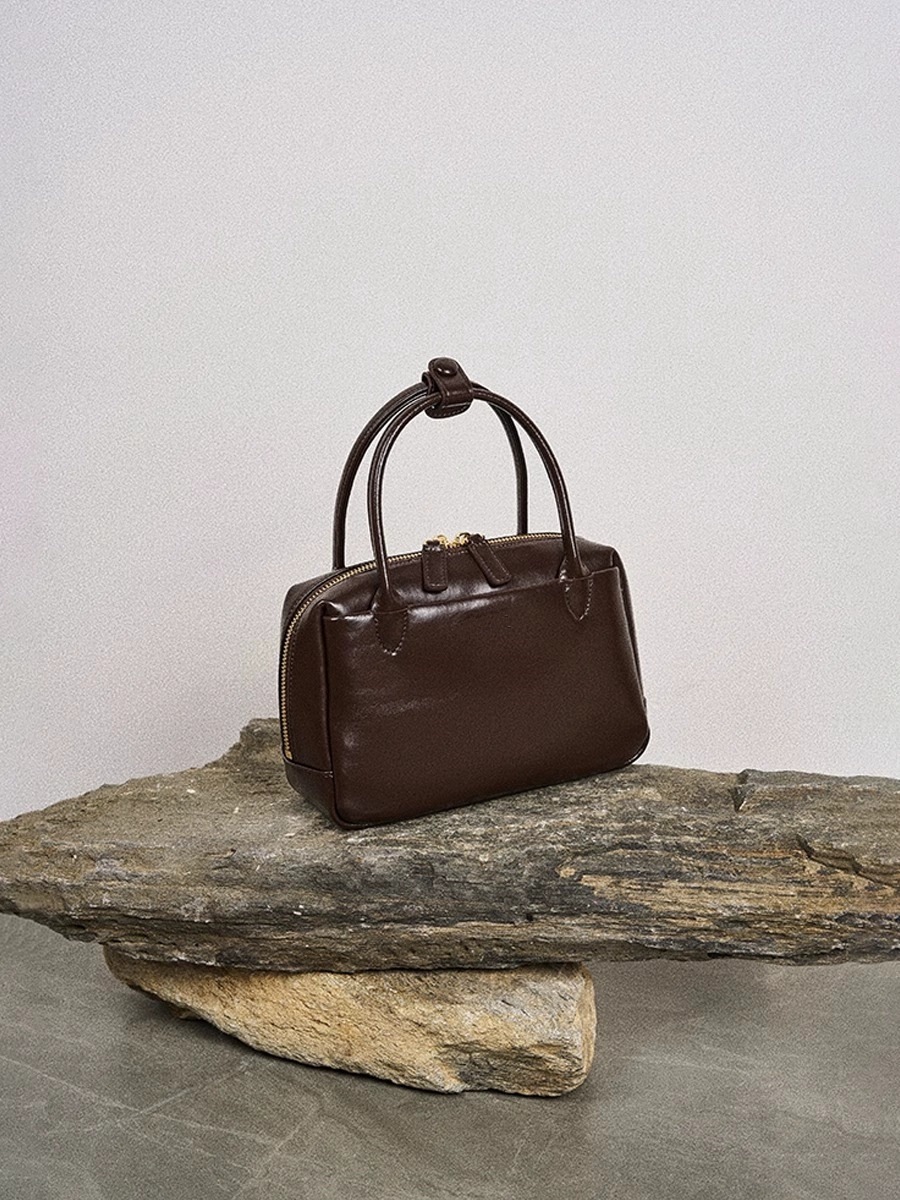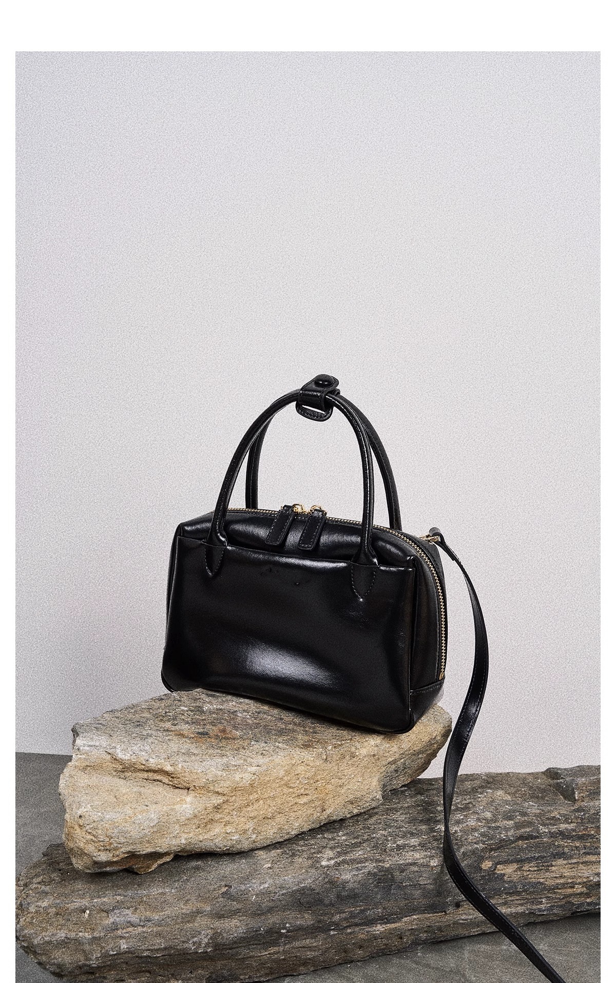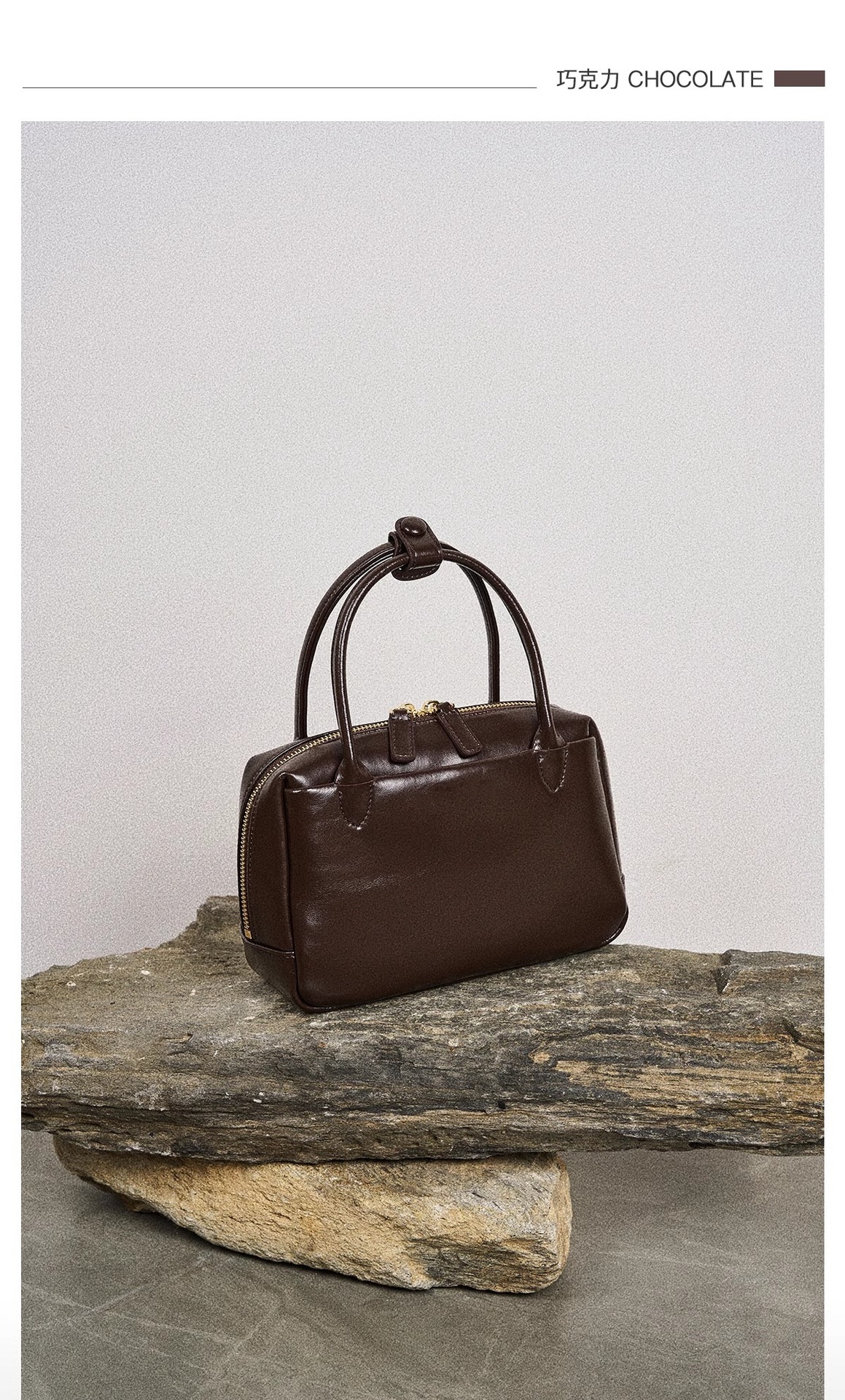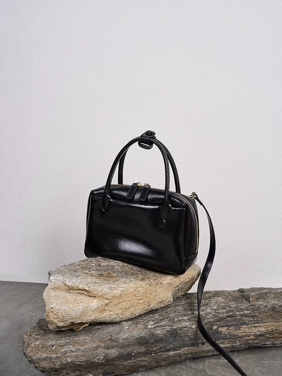 프랑스 레트로 보스턴 작은 광장 가방 여성의 2024 년 초가을 새로운 유행 볼링 핸드백 어깨 크로스 바디 백