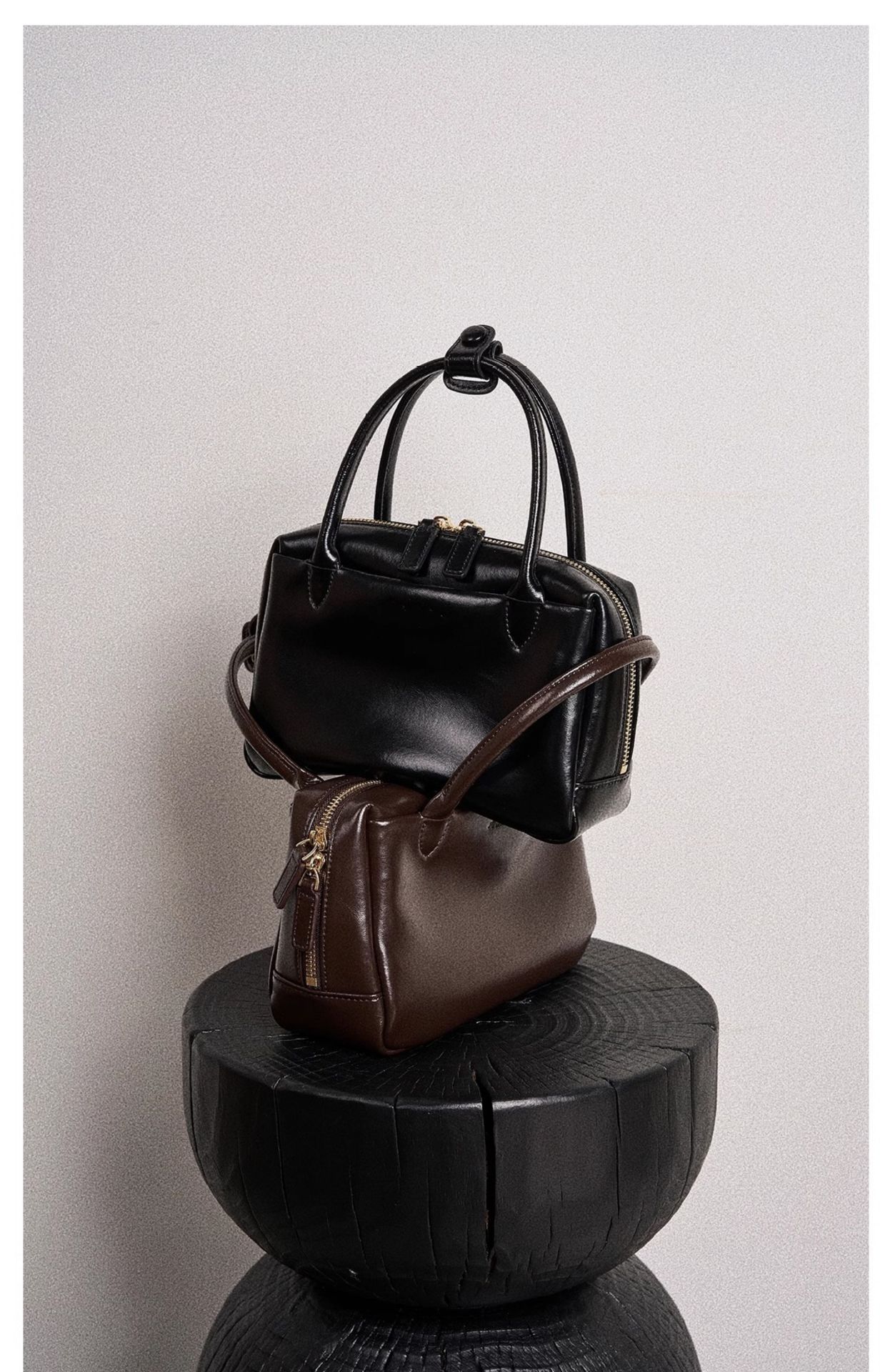 프랑스 레트로 보스턴 작은 광장 가방 여성의 2024 년 초가을 새로운 유행 볼링 핸드백 어깨 크로스 바디 백스토어 가기