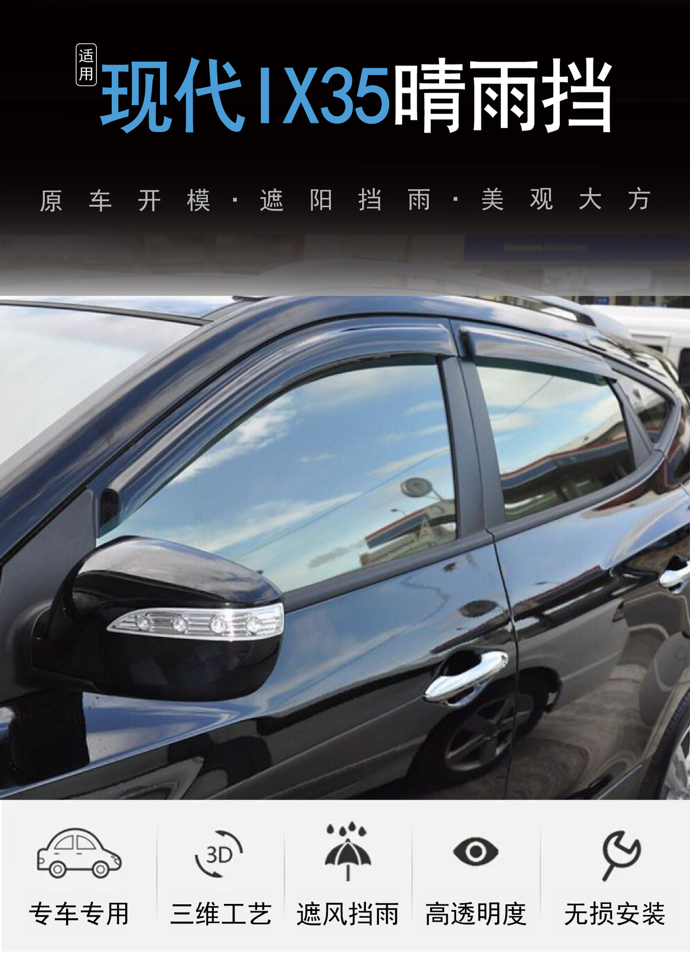 국경 간 응용 프로그램 2010-2018 현대 IX35 자동차 창 비 방패 4 검은 아크릴 자동차 비 방패스토어 가기