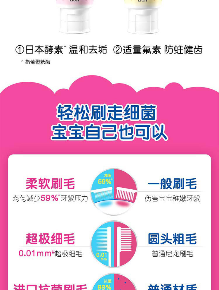 【슈퍼마켓에서도 판매】라이온 와이드 치아 청결 항균 초극세모 어린이 칫솔 2세 이상 공식 인증스토어 가기