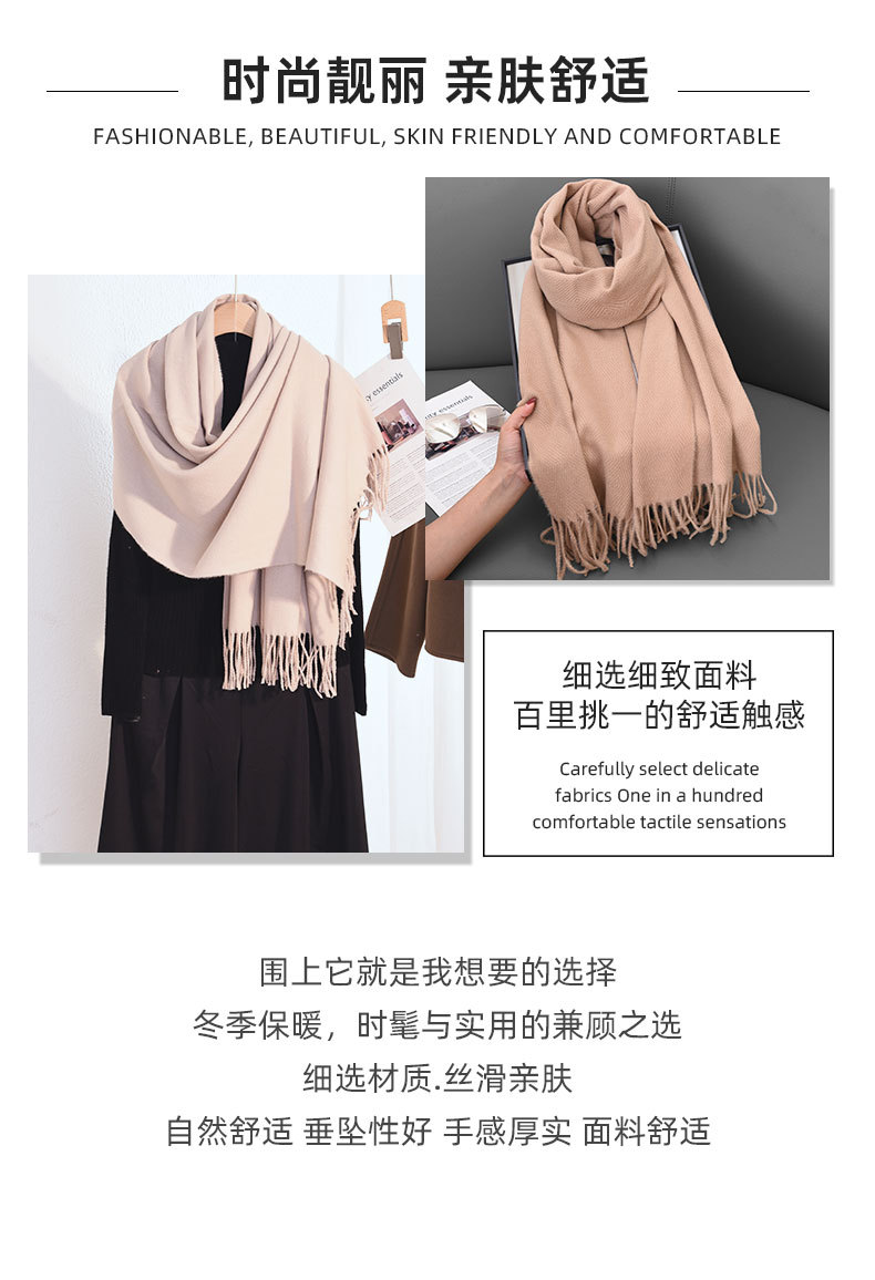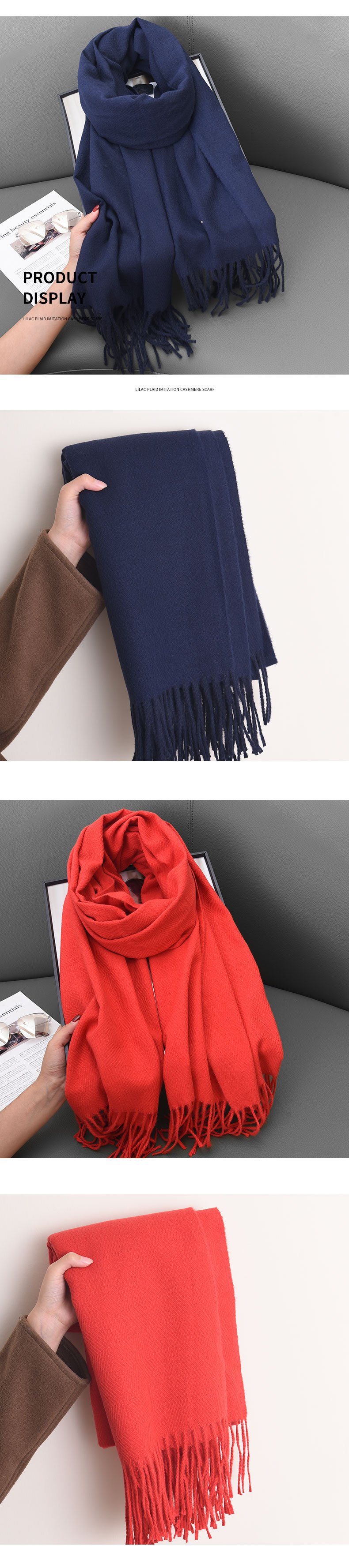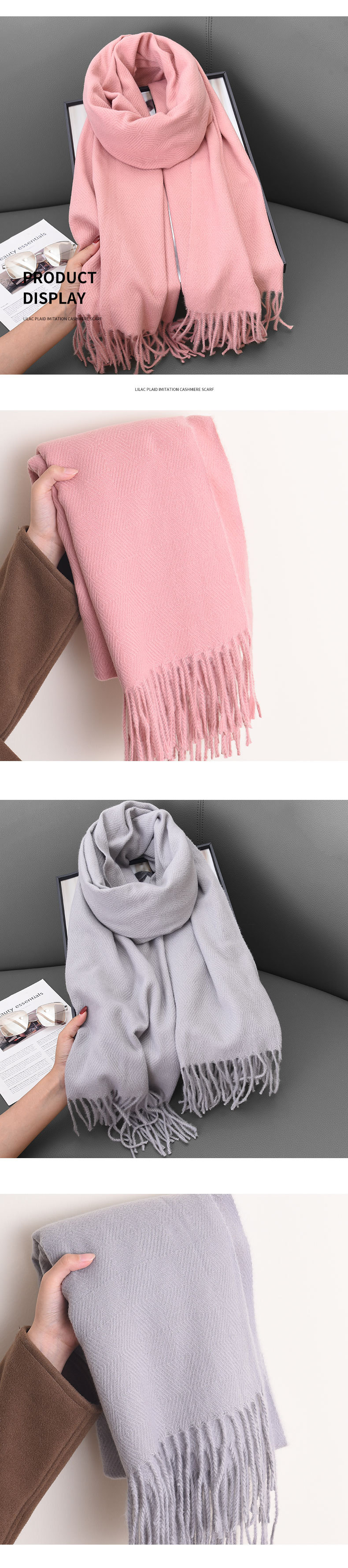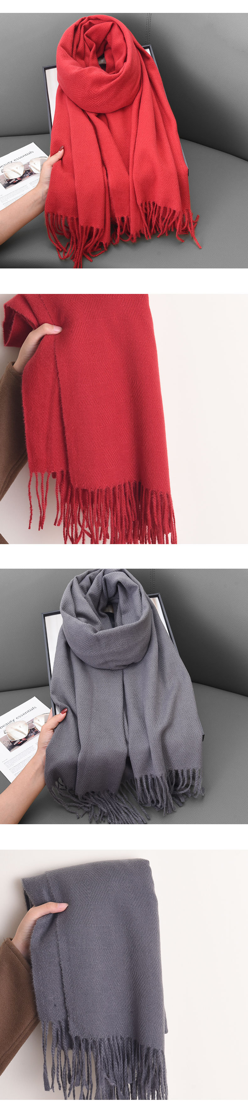 스카프 여성의 가을과 겨울 단색 중간 길이의 술 목도리 다시 단어 패턴 냉간 따뜻한 유지 올 매치 커플 학생 스카프