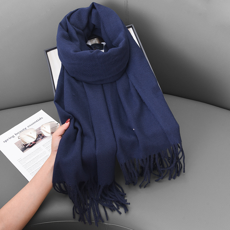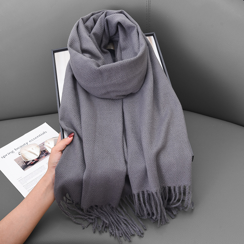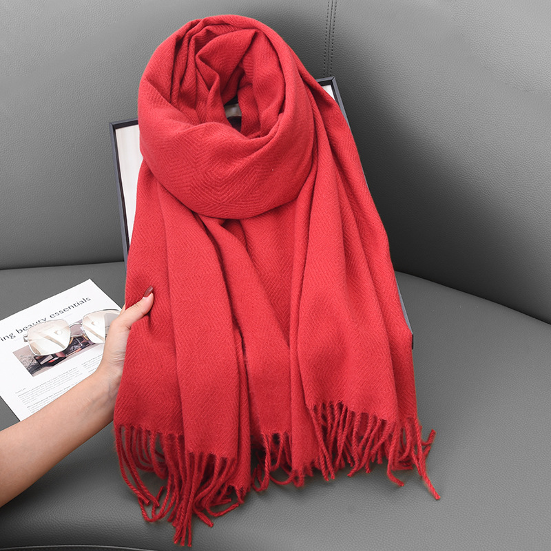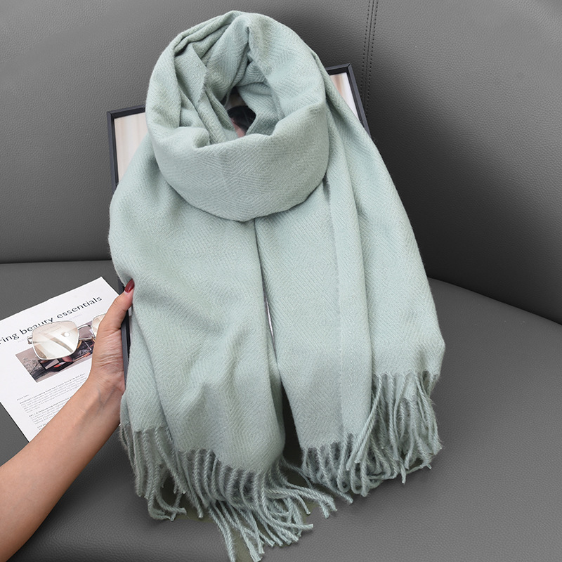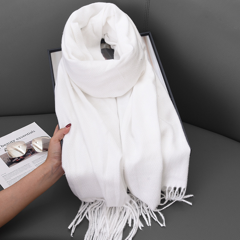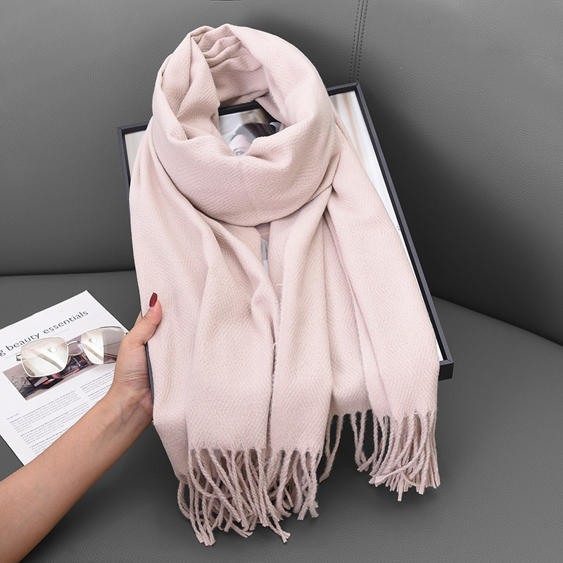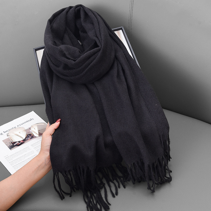 스카프 여성의 가을과 겨울 단색 중간 길이의 술 목도리 다시 단어 패턴 냉간 따뜻한 유지 올 매치 커플 학생 스카프