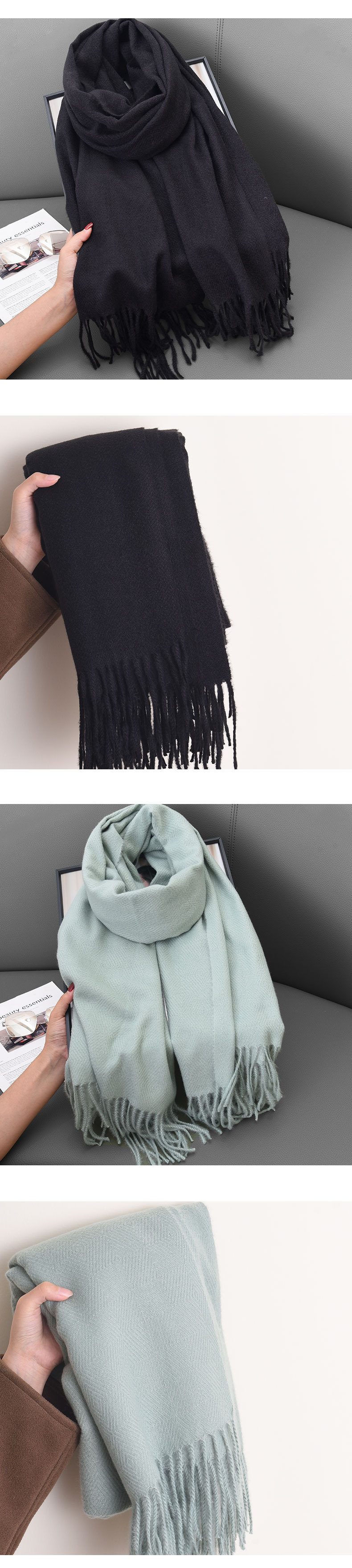 스카프 여성의 가을과 겨울 단색 중간 길이의 술 목도리 다시 단어 패턴 냉간 따뜻한 유지 올 매치 커플 학생 스카프스토어 가기