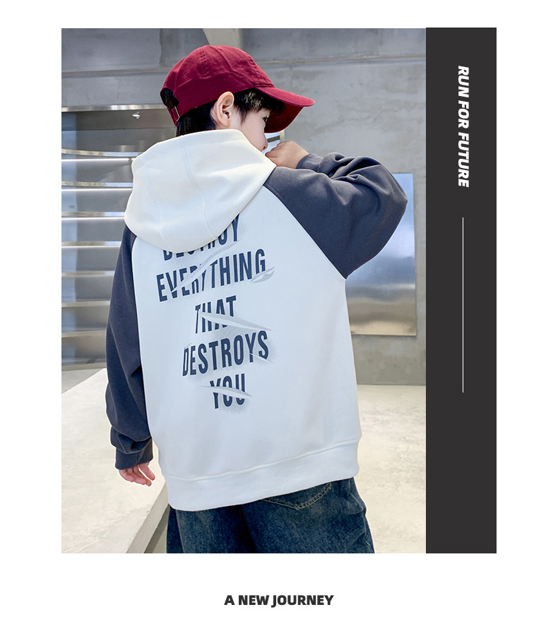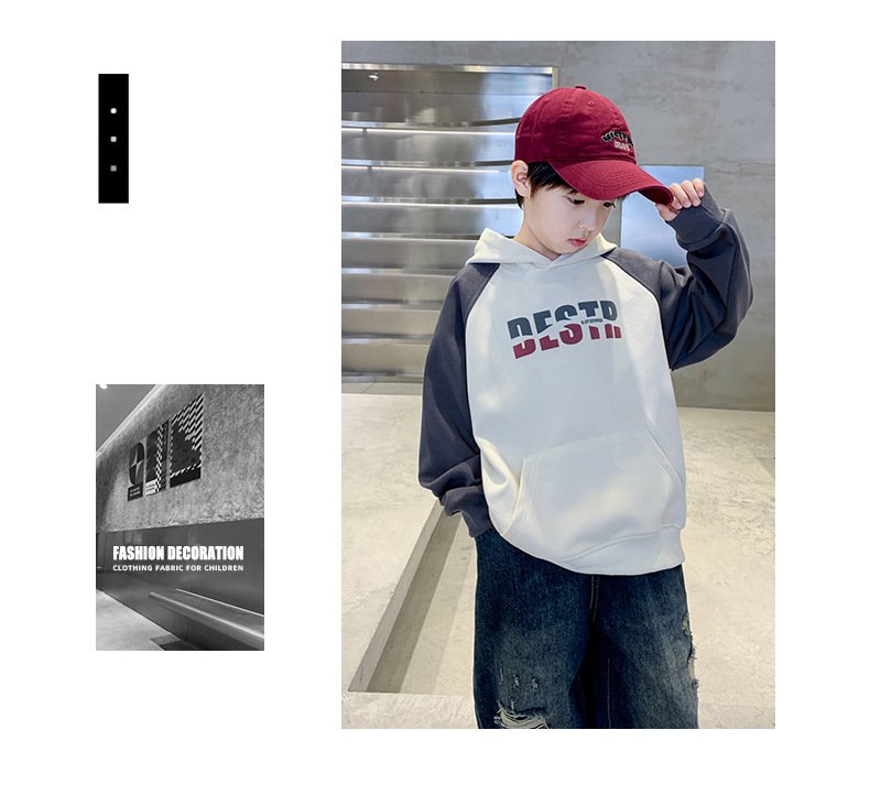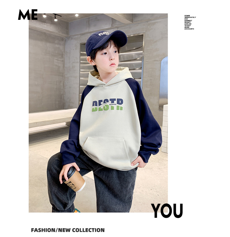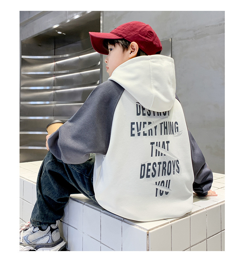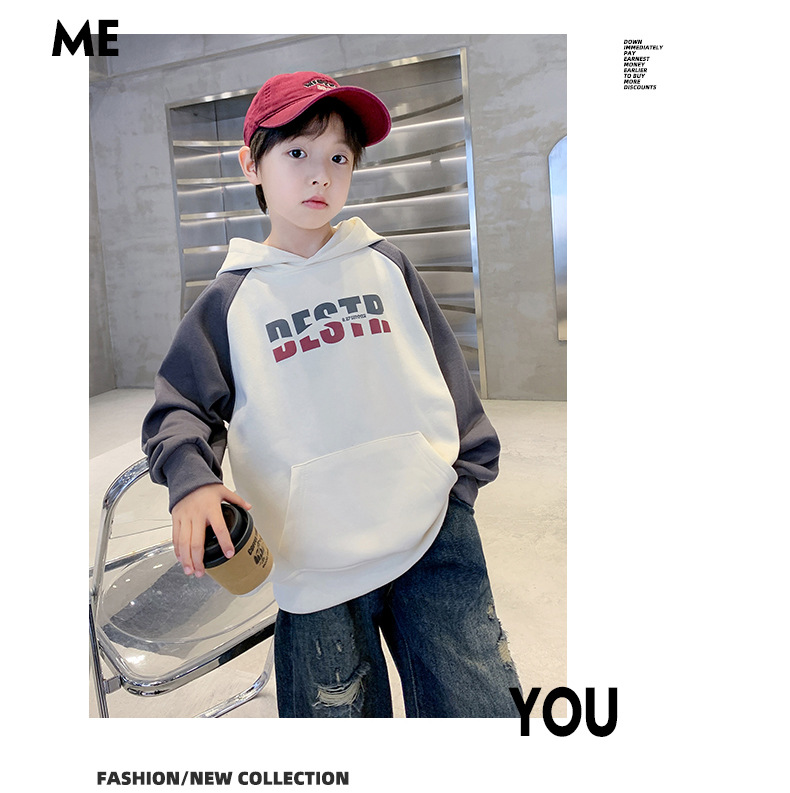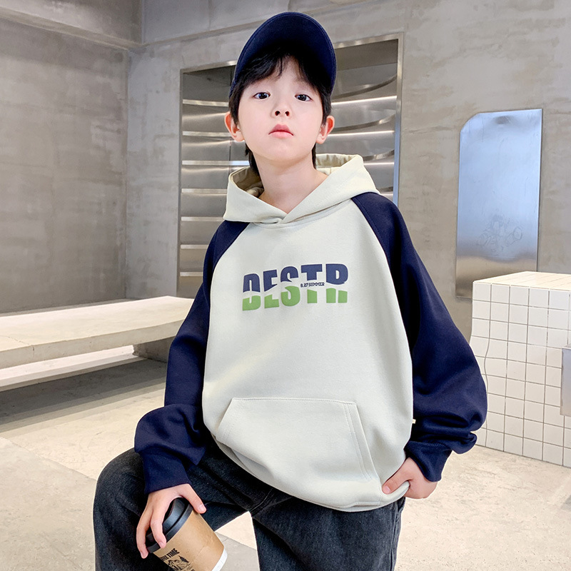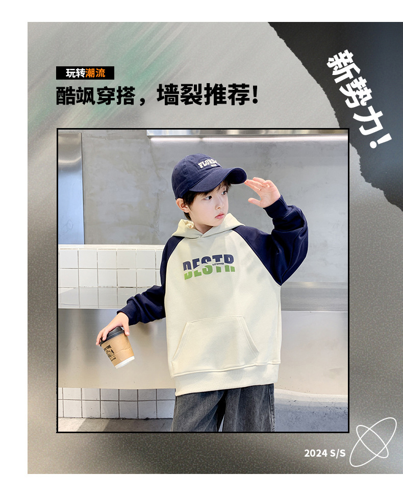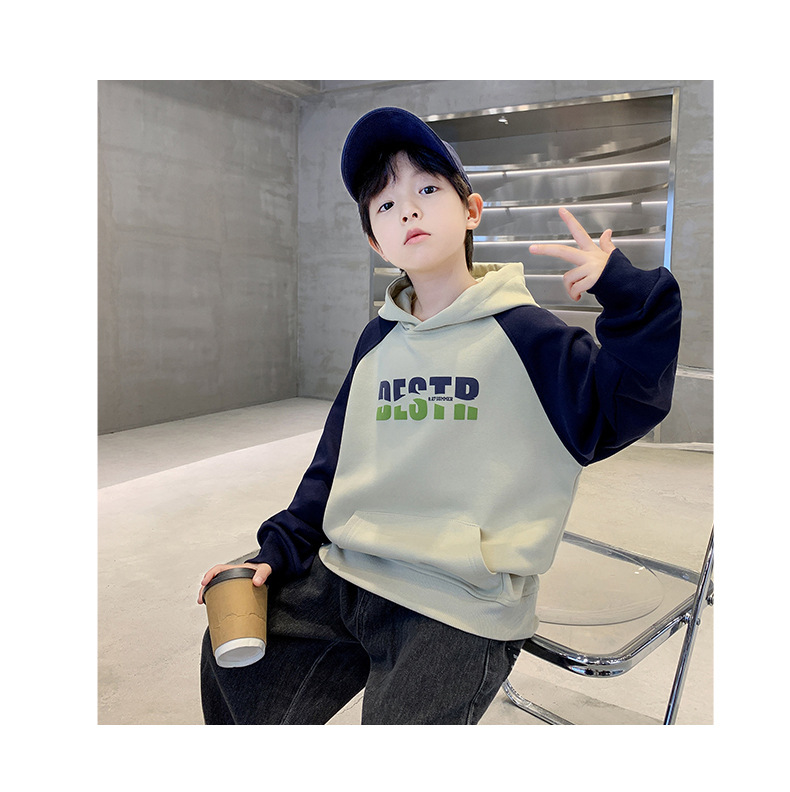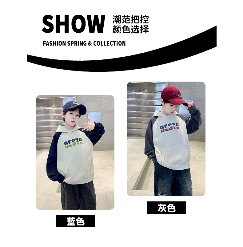 어린이 의류 소년 봄 후드 땀 2024 새로운 도착 중대형 어린이 봄 및 가을 스타일리시 탑 소년 봄 트렌디스토어 가기