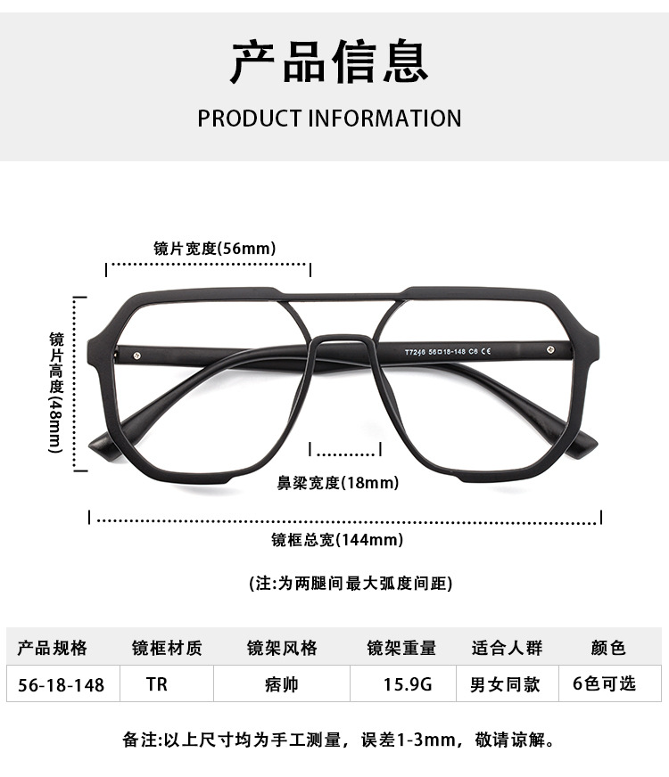 7246 대형 프레임 올 매치 파일럿 더블 빔 플랫 미러 남성용 핫 전자 상거래 혼합 거리 근시 미러 프레임 배치스토어 가기