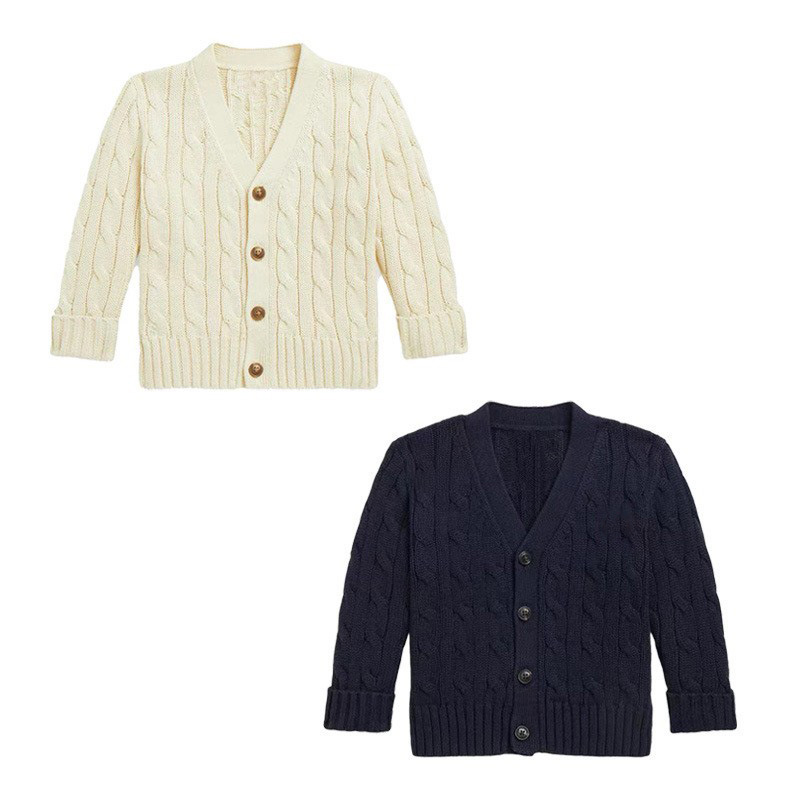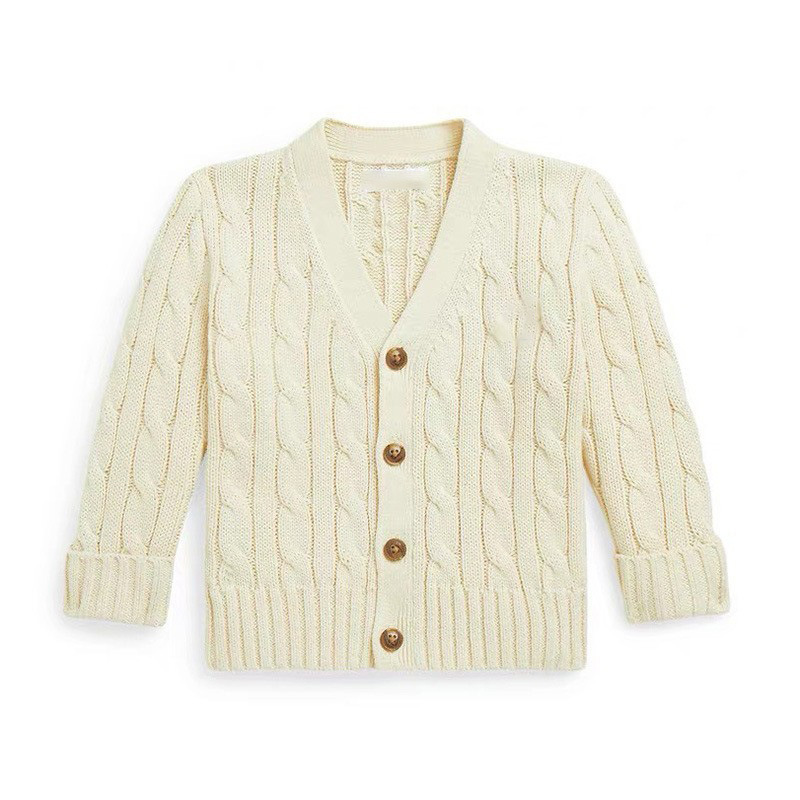2025 소년과 소녀를위한 새로운 어린이 순수 코튼 트위스트 긴팔 카디건 v 넥 스웨터 겨울 아기 스웨터 자켓