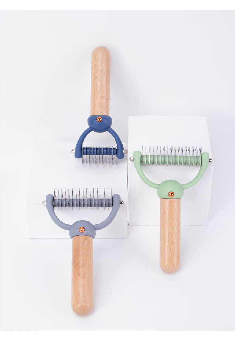 아마존 폭발 고양이 개 퇴색 한 너도밤 나무 빗 스테인레스 스틸 블레이드 양면 개 빗 애완 동물 매듭 빗