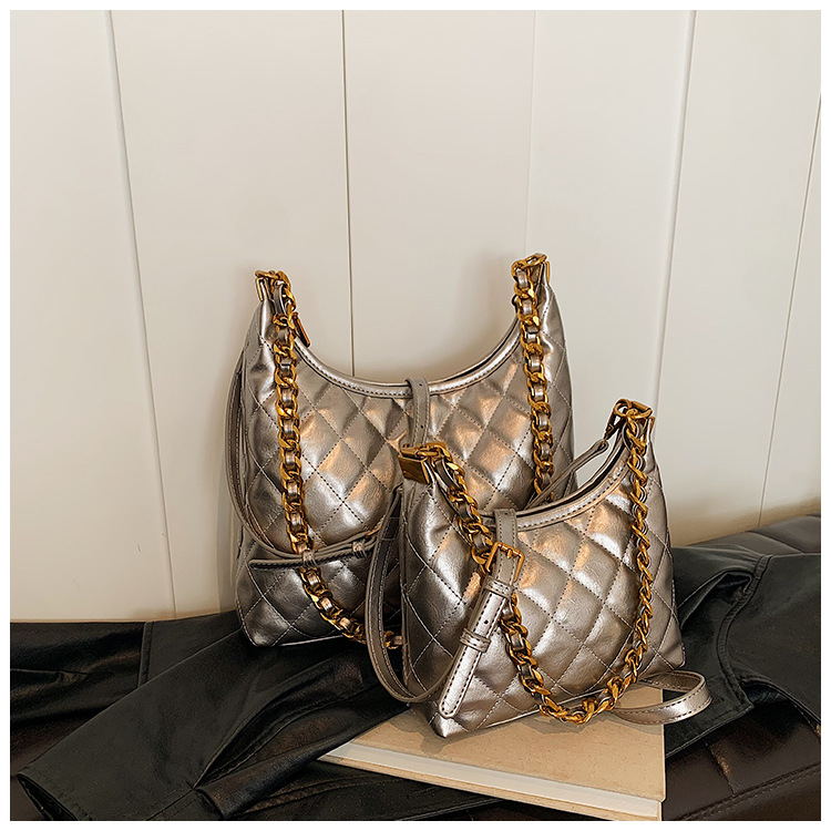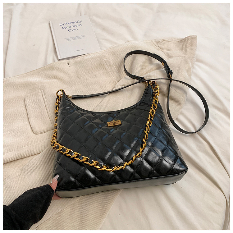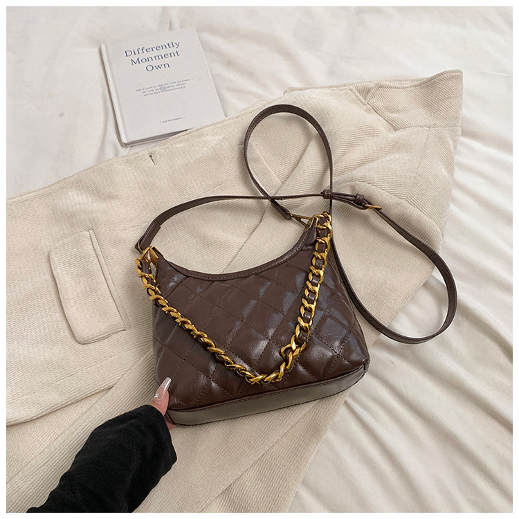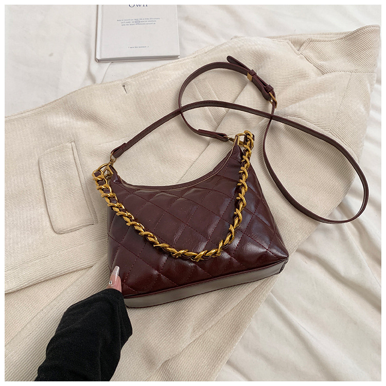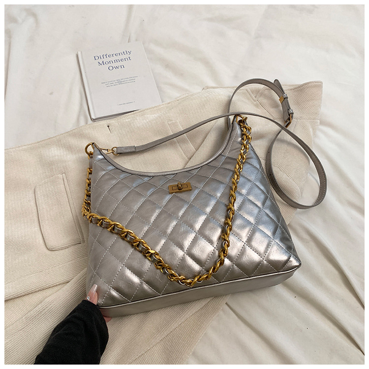 빈티지 마름모꼴 체인 언더암 가방 여성용 2024 새로운 유행 토트 백 세련된 어깨 크로스 바디 백