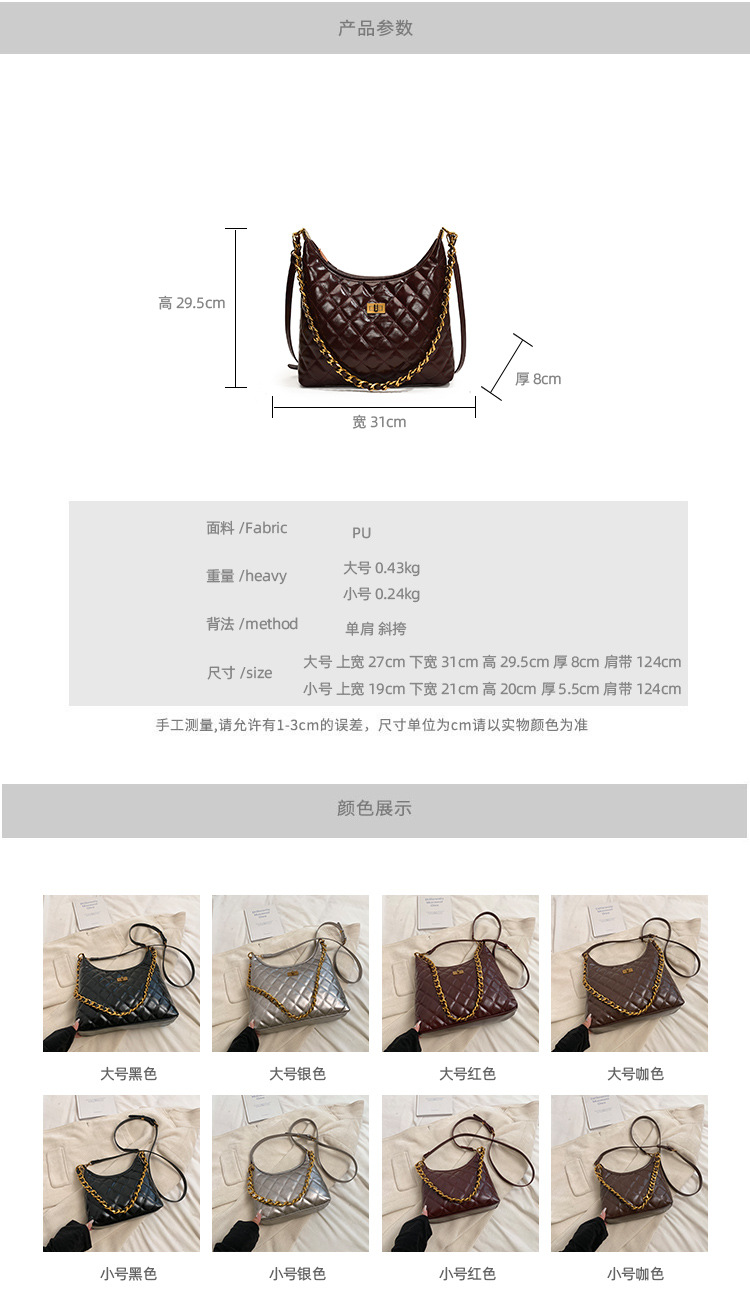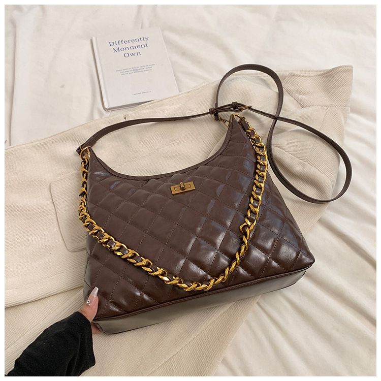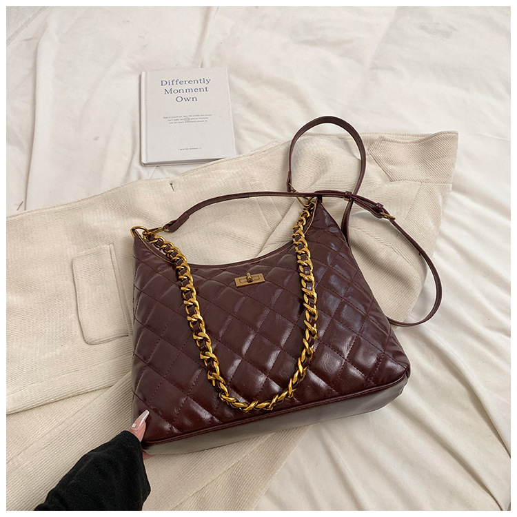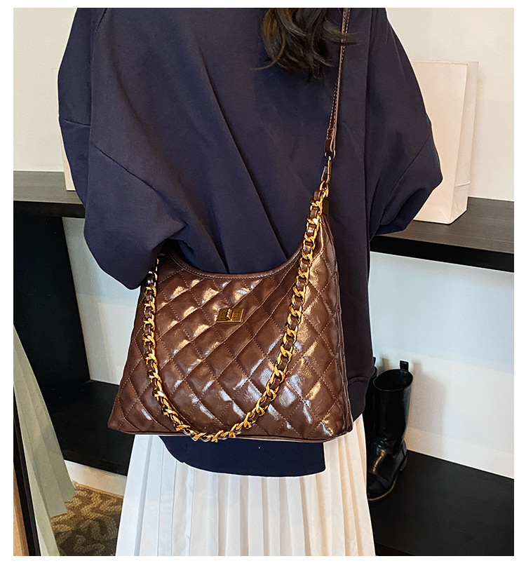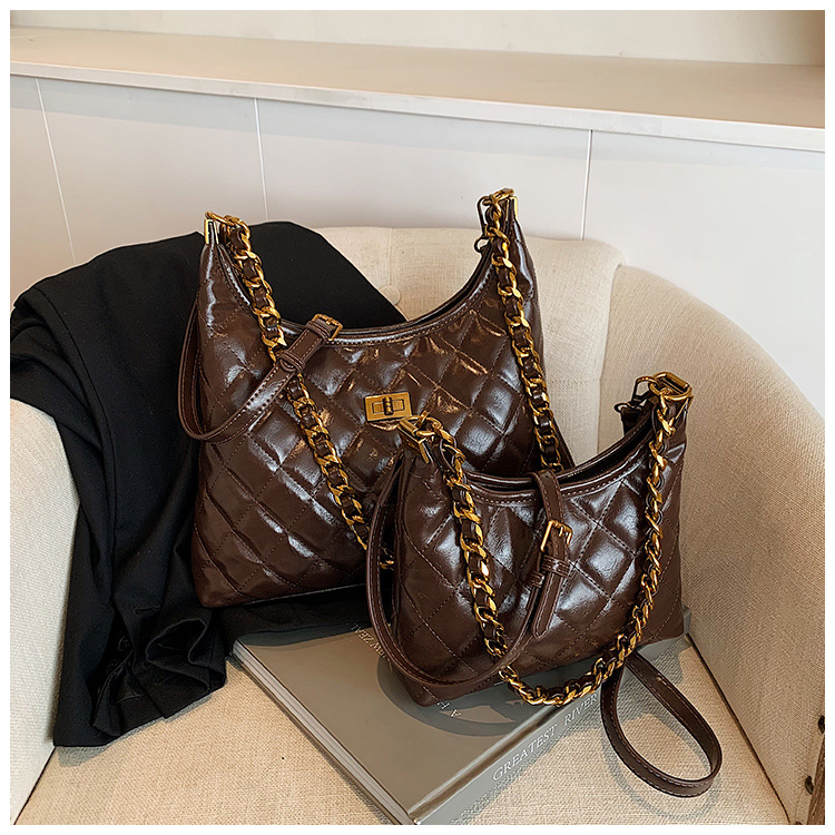 빈티지 마름모꼴 체인 언더암 가방 여성용 2024 새로운 유행 토트 백 세련된 어깨 크로스 바디 백스토어 가기