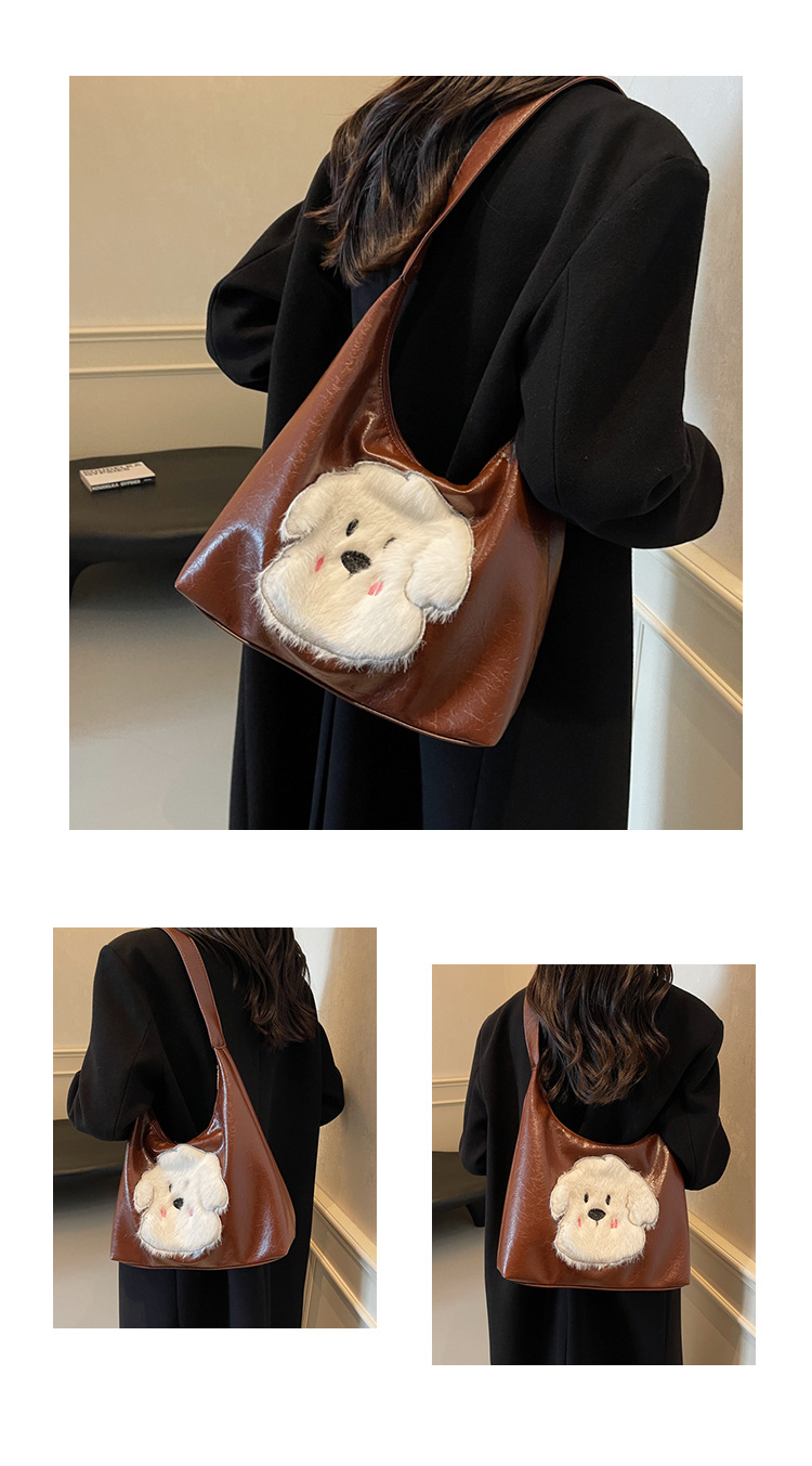 가을과 겨울 대용량 토트 여성용 가방 2024 새로운 패션 귀여운 만화 봉제 강아지 어깨 크로스 바디 백