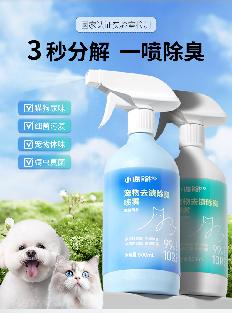 펌프 헤드 흩어진 냄새 제거 소변 얼룩 애완 동물 청소 용품 도매 작은 냉동 애완 동물 얼룩 제거 탈취 스프레이스토어 가기