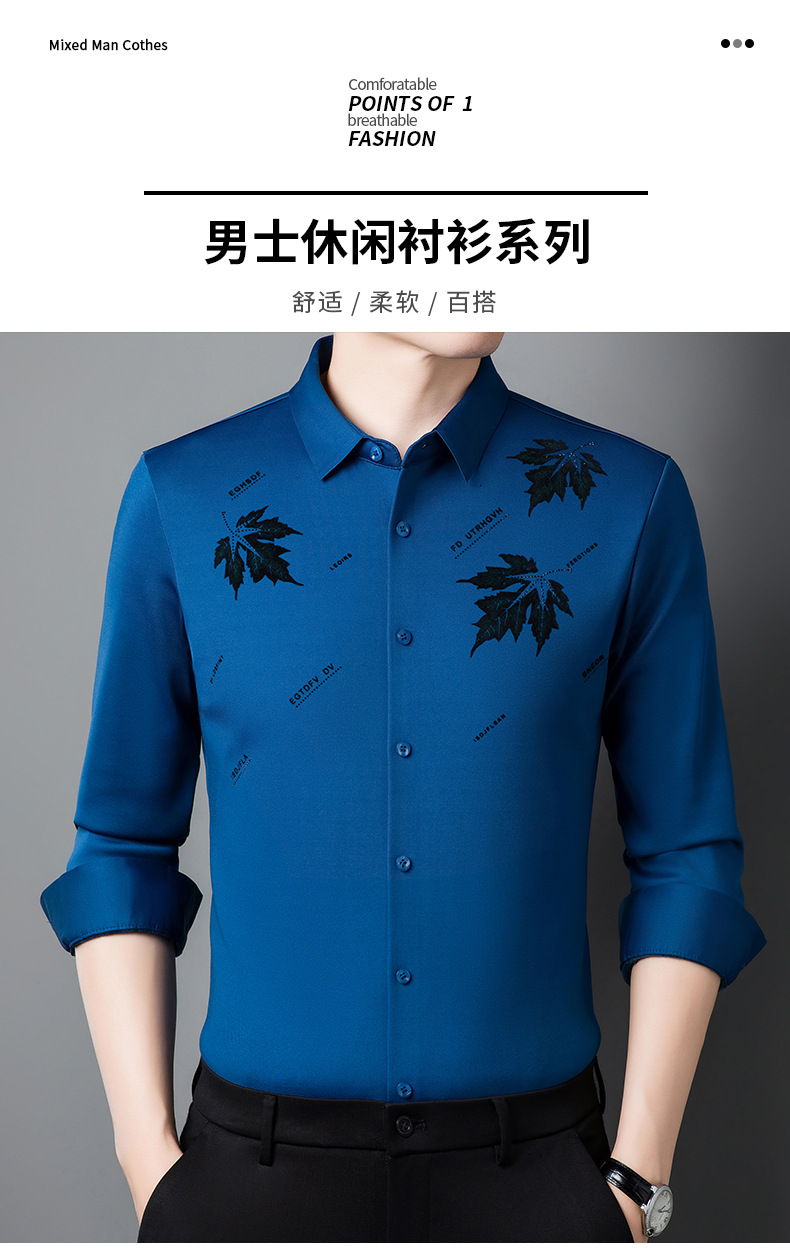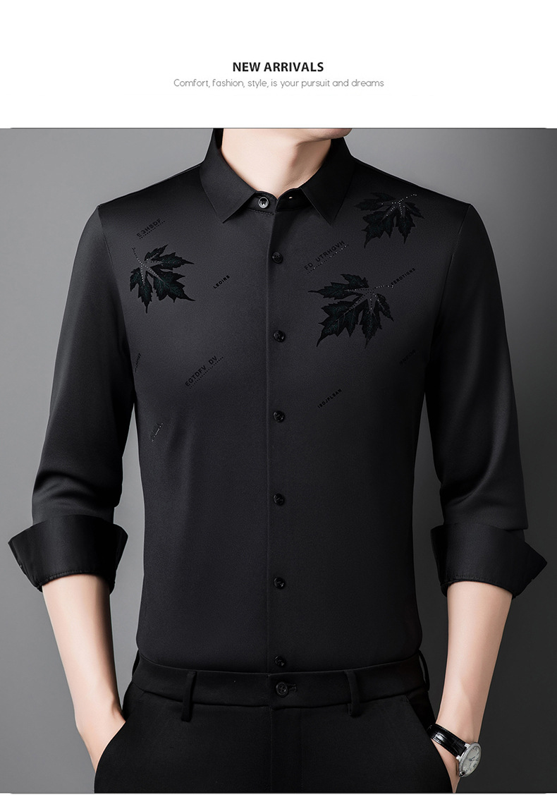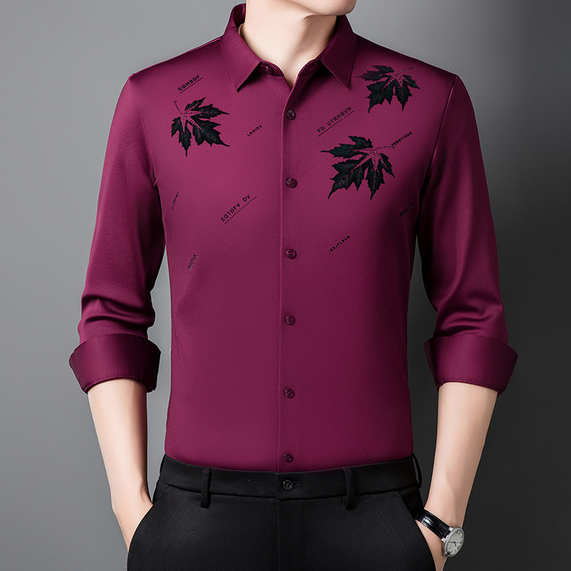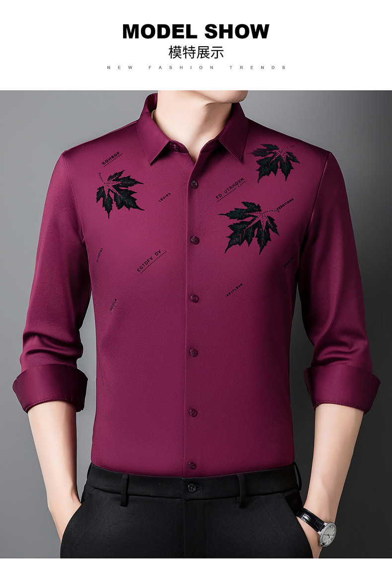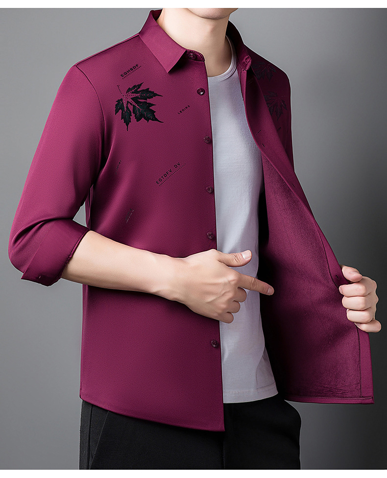 국경 가을과 겨울 원활한 긴 소매 기모 셔츠 남성 핫 스탬핑 메이플 리프 패턴 탑 비즈니스 패션 청소년 셔츠