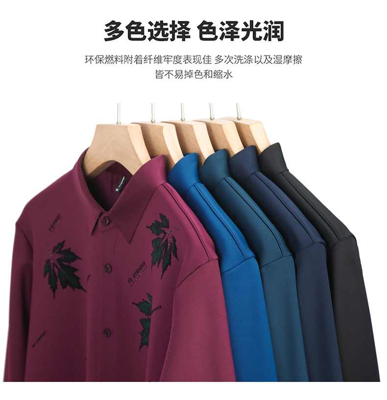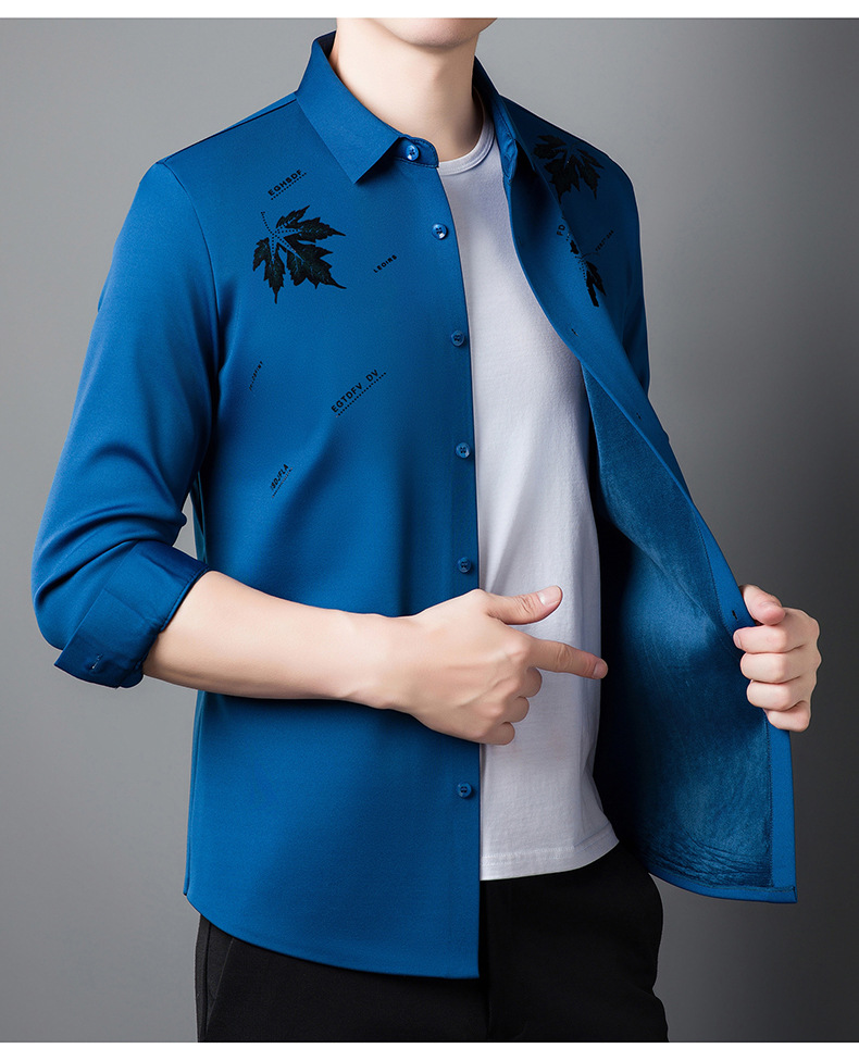 국경 가을과 겨울 원활한 긴 소매 기모 셔츠 남성 핫 스탬핑 메이플 리프 패턴 탑 비즈니스 패션 청소년 셔츠스토어 가기