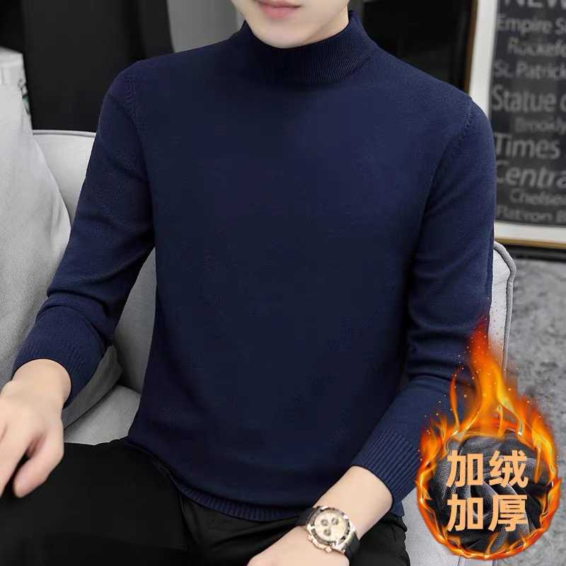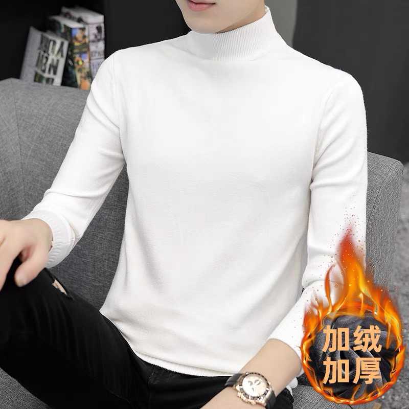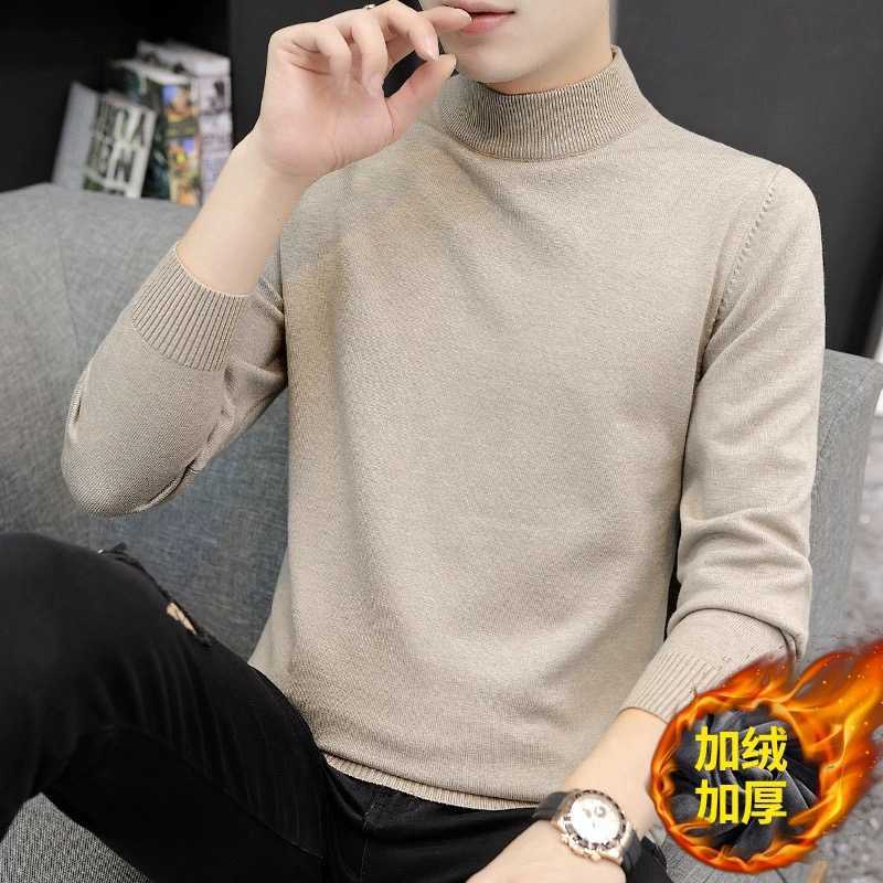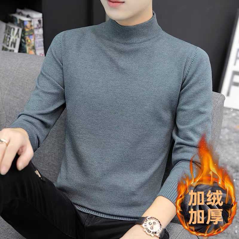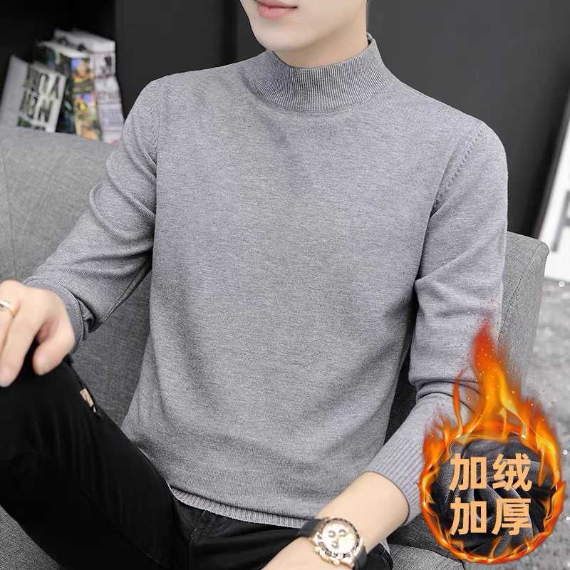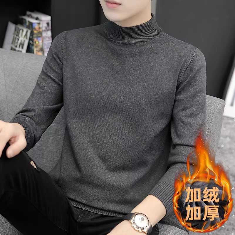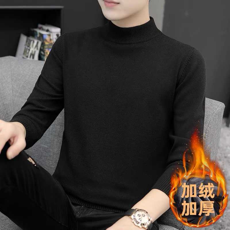 하프 터틀넥 스웨터 남성 가을 · 겨울 미들 칼라 스웨터 기모 두꺼운 베이스 셔츠 한국 스웨터 밀물 도매 직접 판매스토어 가기