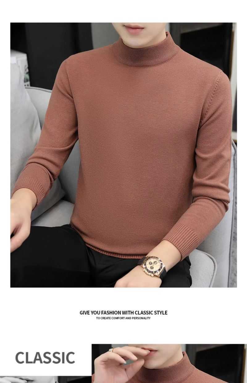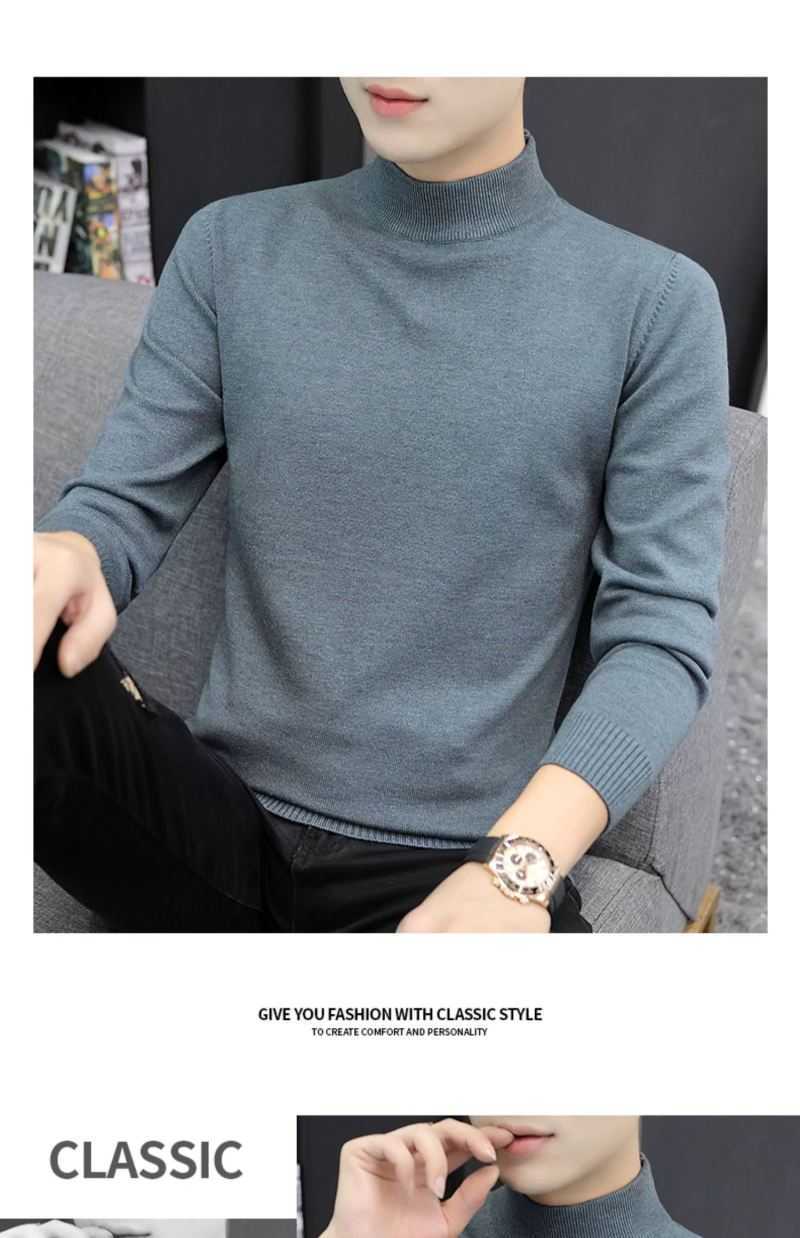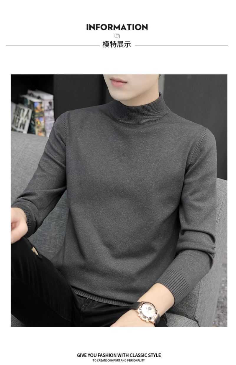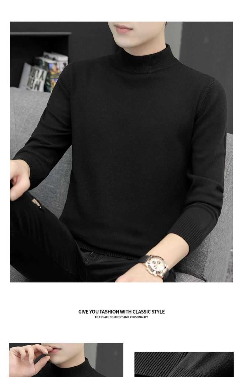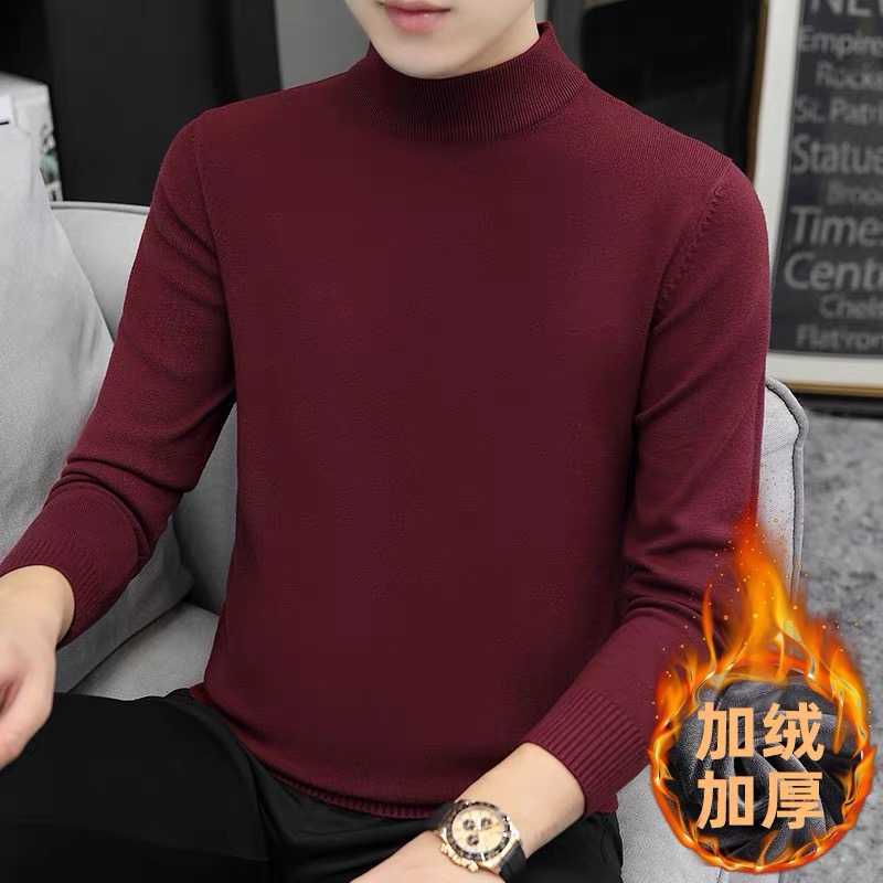 하프 터틀넥 스웨터 남성 가을 · 겨울 미들 칼라 스웨터 기모 두꺼운 베이스 셔츠 한국 스웨터 밀물 도매 직접 판매스토어 가기