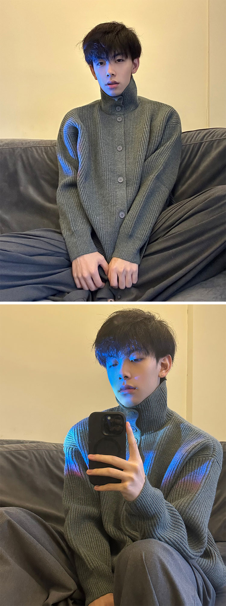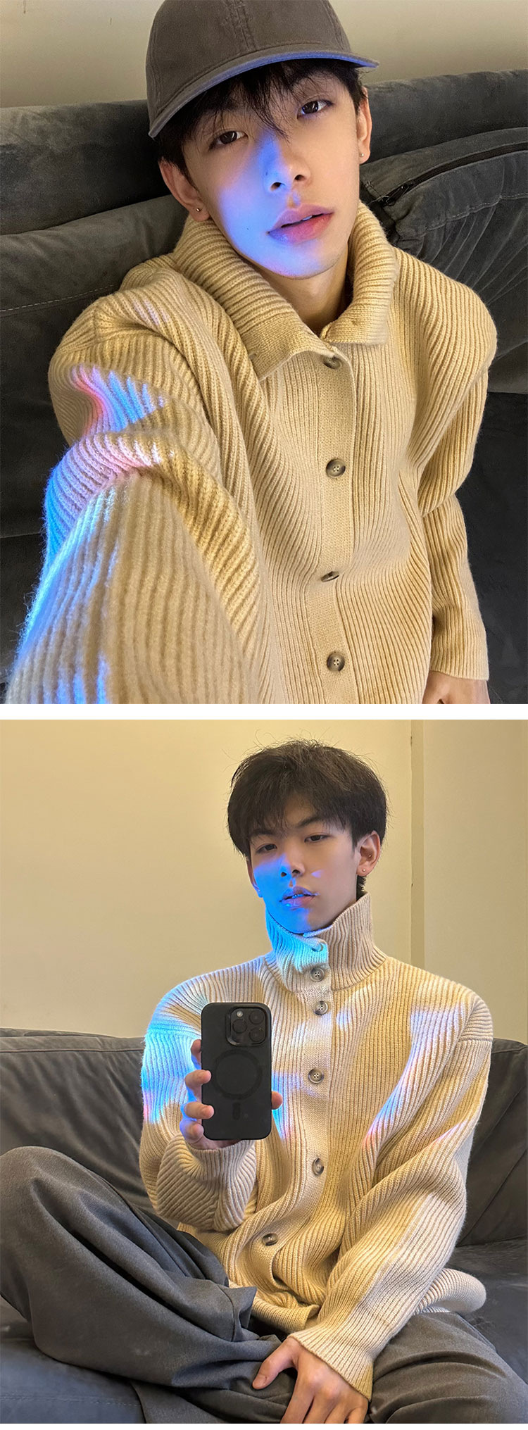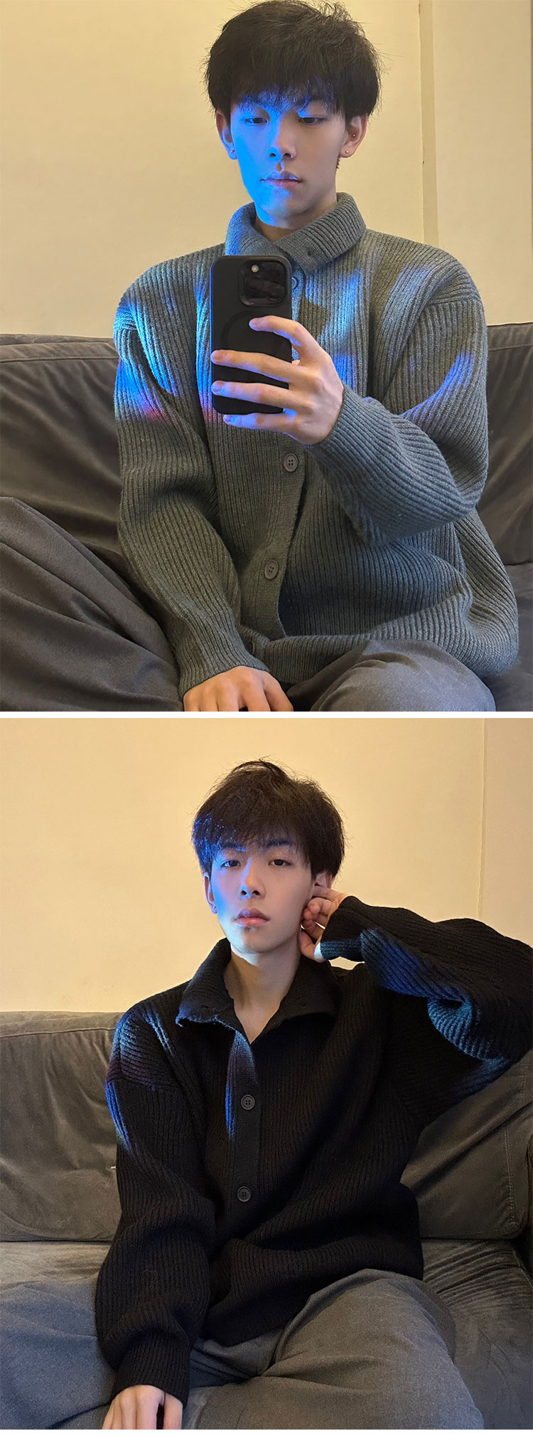 다크 그레이 카디건 재킷 남자 봄과 가을 고급 한국 스타일 니트 스웨터 주니어 하이 엔드 스웨터 착용