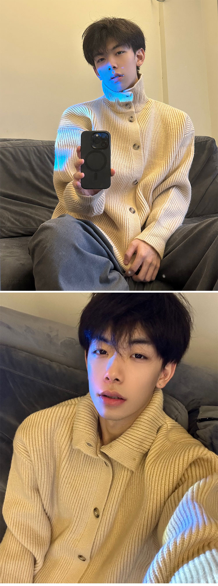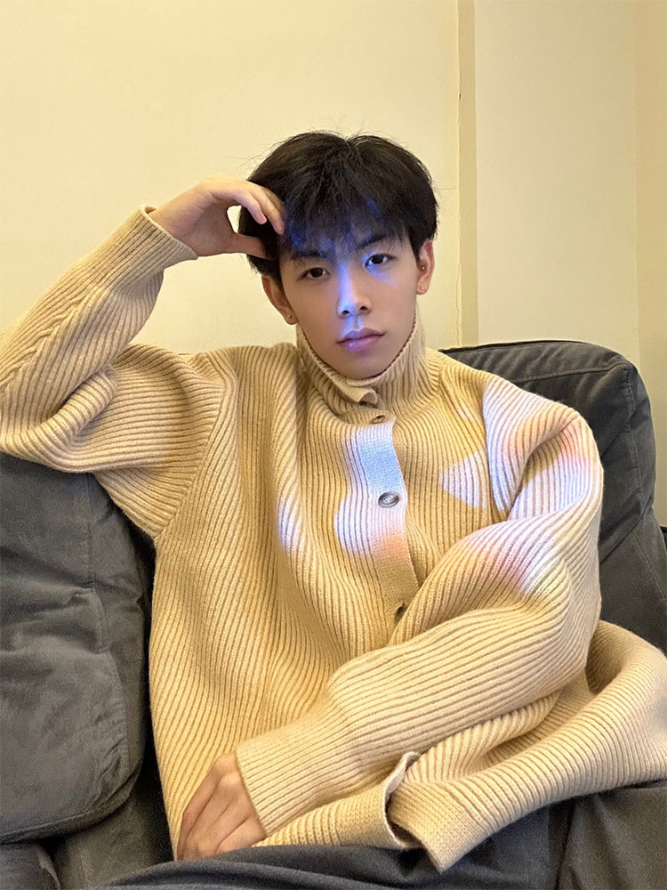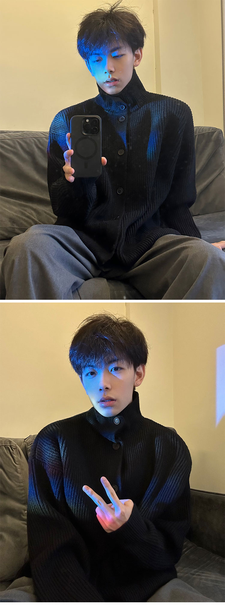 다크 그레이 카디건 재킷 남자 봄과 가을 고급 한국 스타일 니트 스웨터 주니어 하이 엔드 스웨터 착용