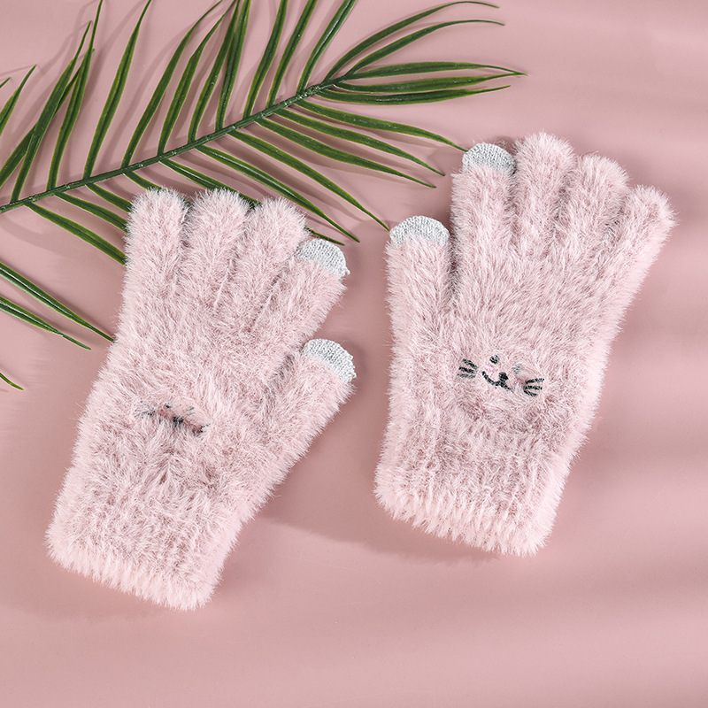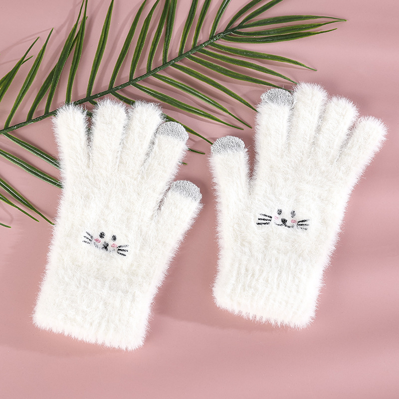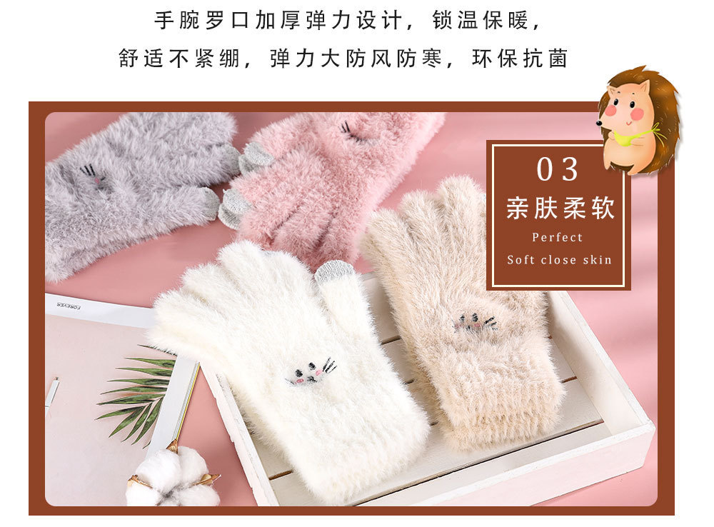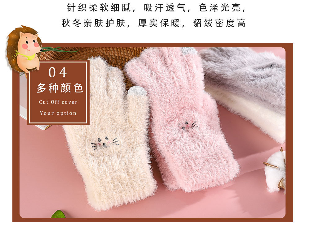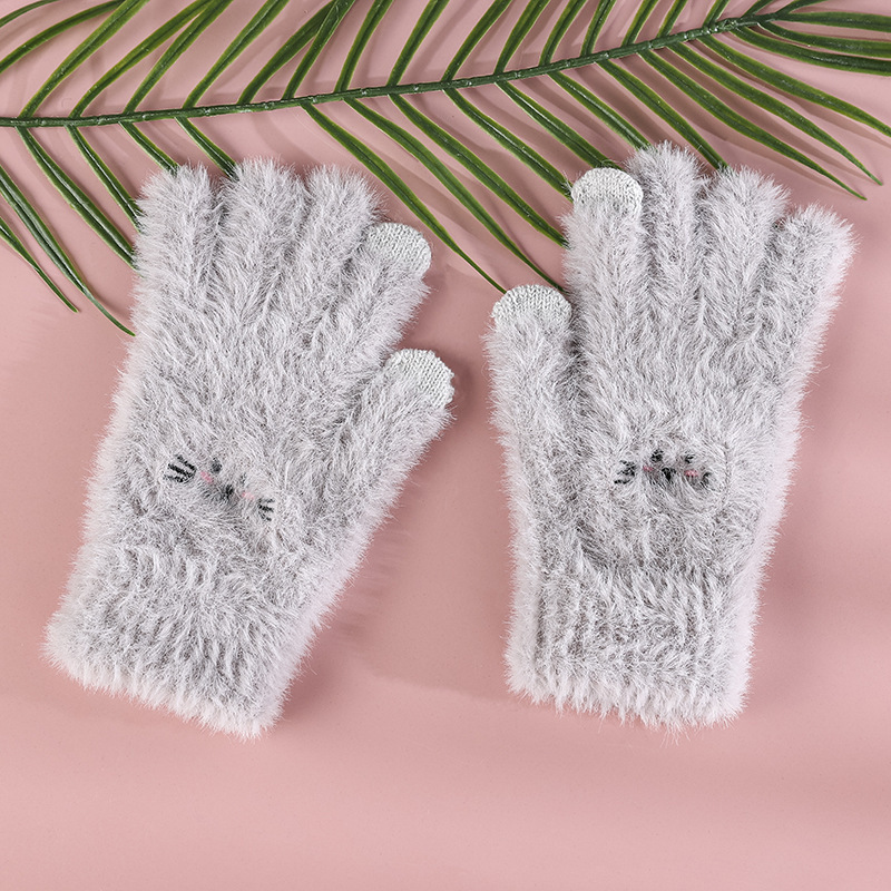 장갑 여자의 겨울 따뜻한 터치 니트 장갑 수염 기모 두꺼운 양모 만화 손가락 장갑