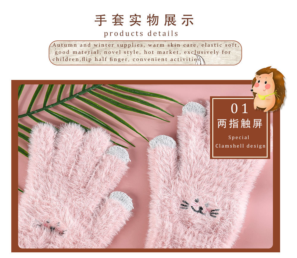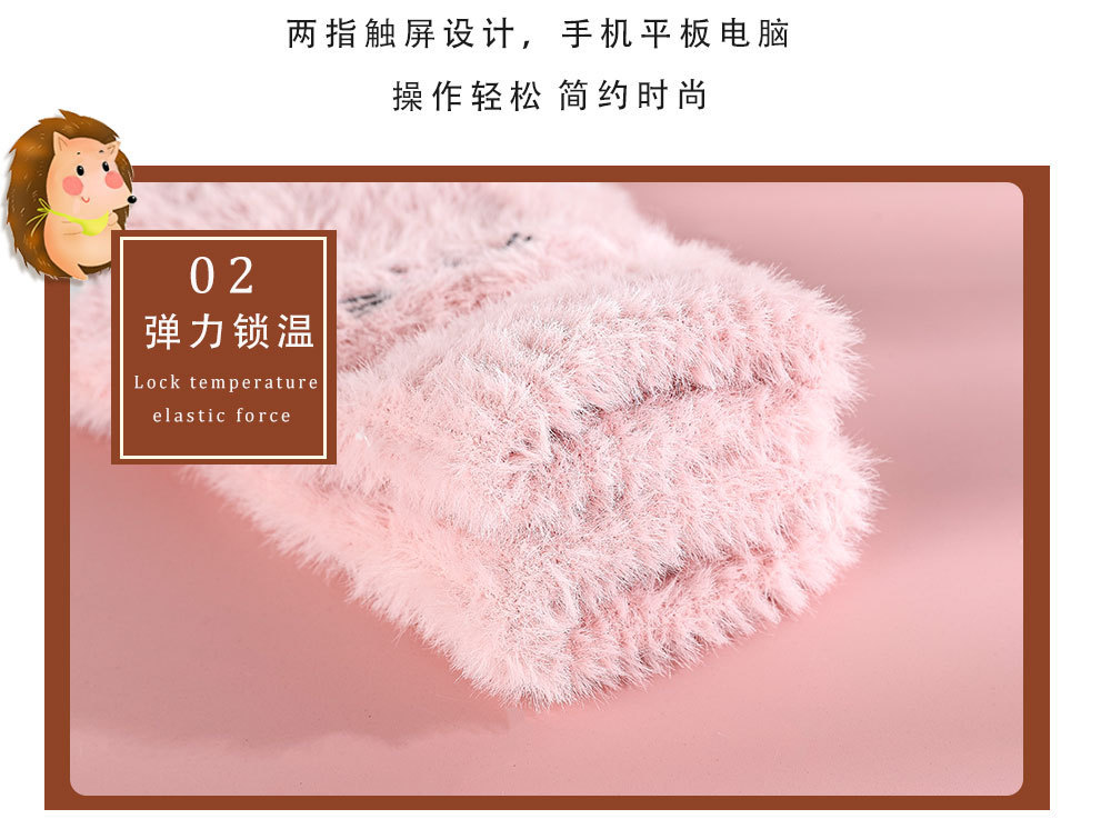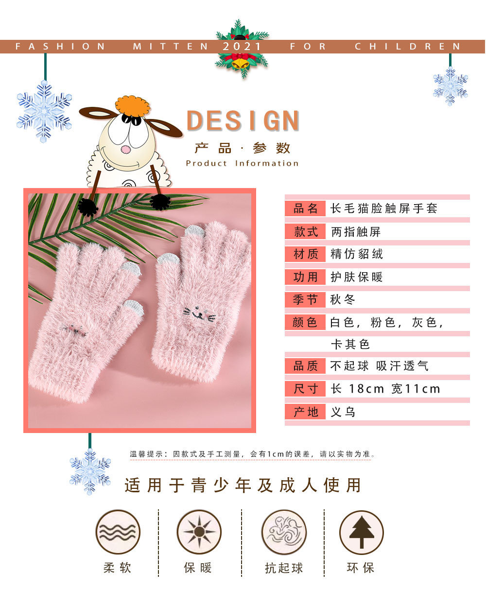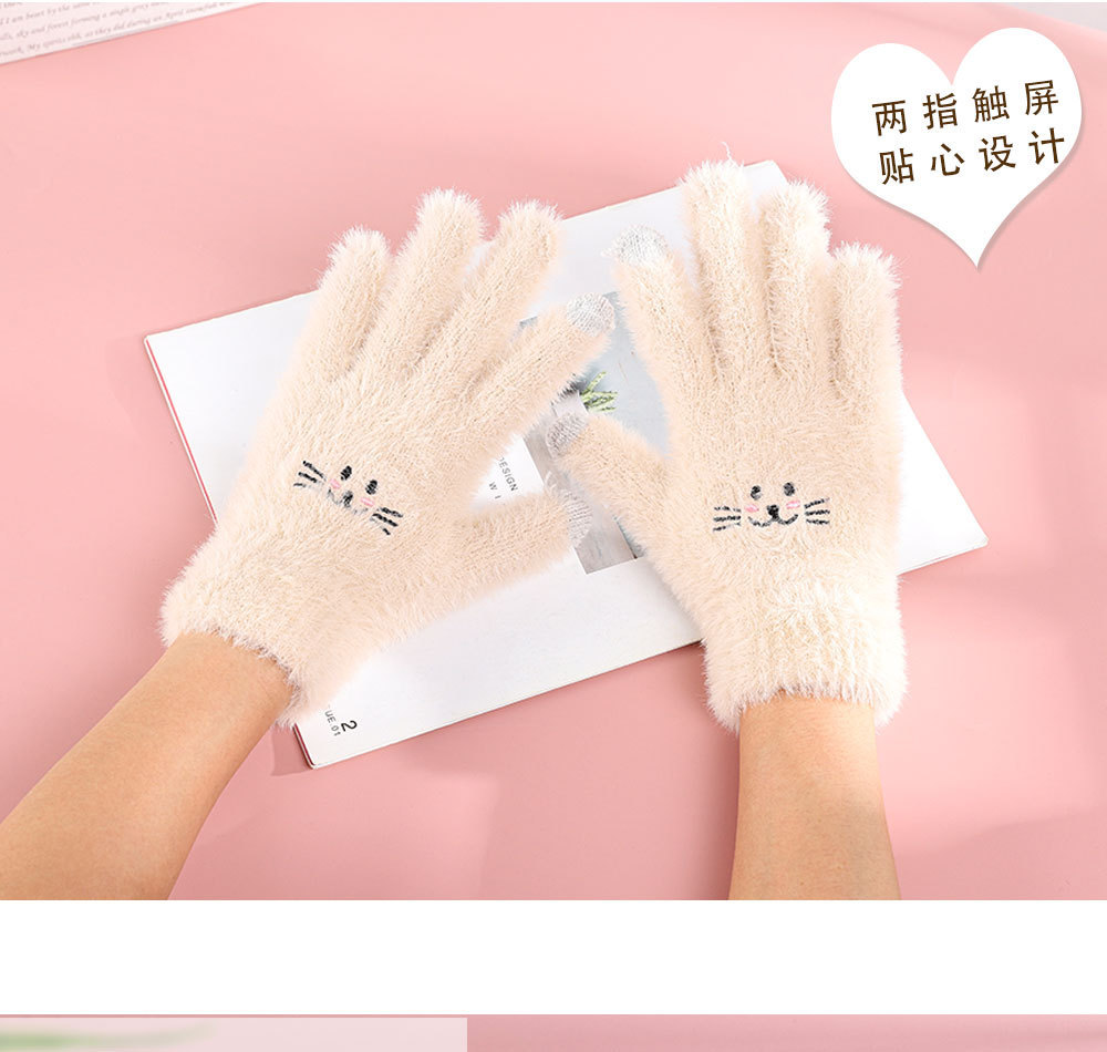 장갑 여자의 겨울 따뜻한 터치 니트 장갑 수염 기모 두꺼운 양모 만화 손가락 장갑