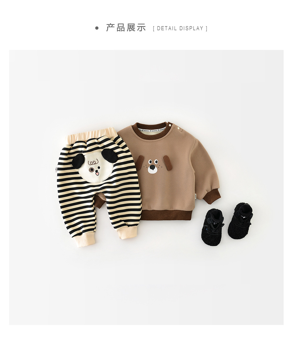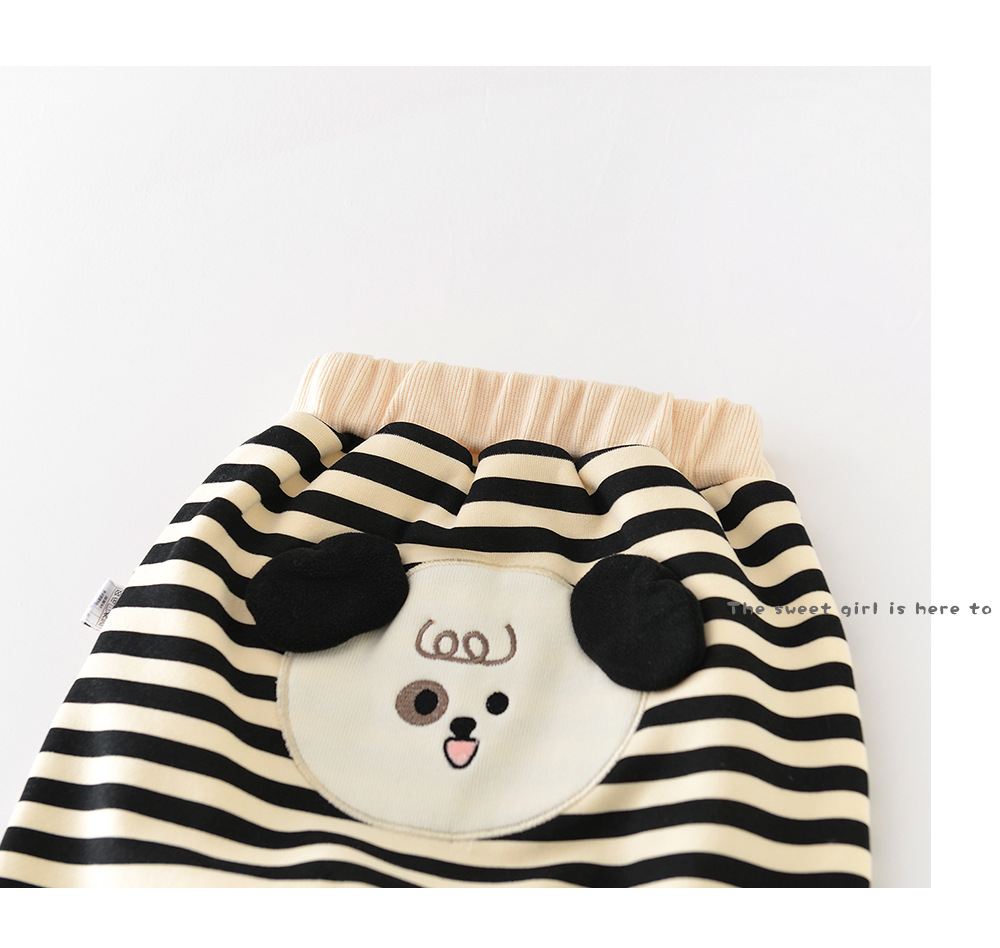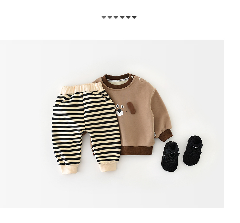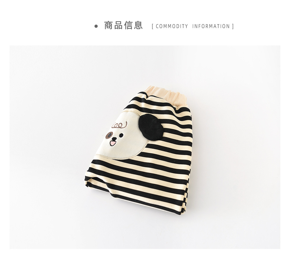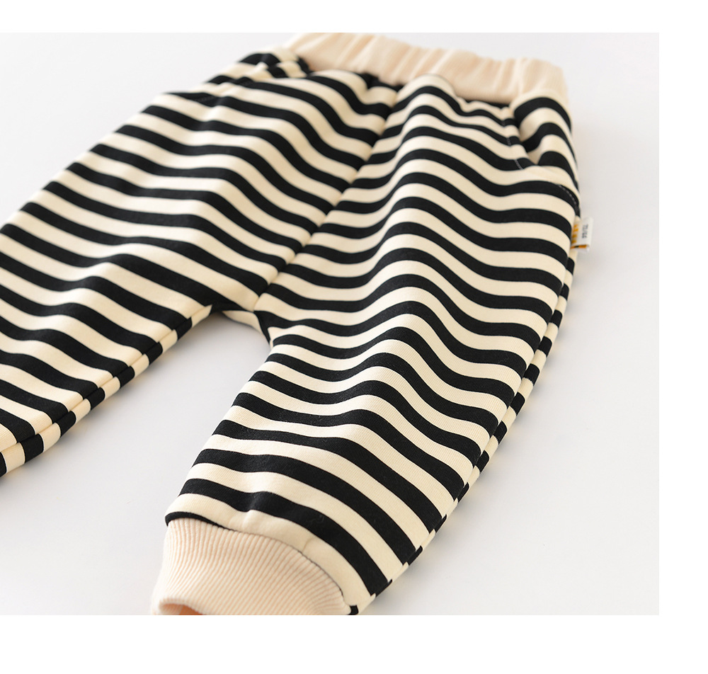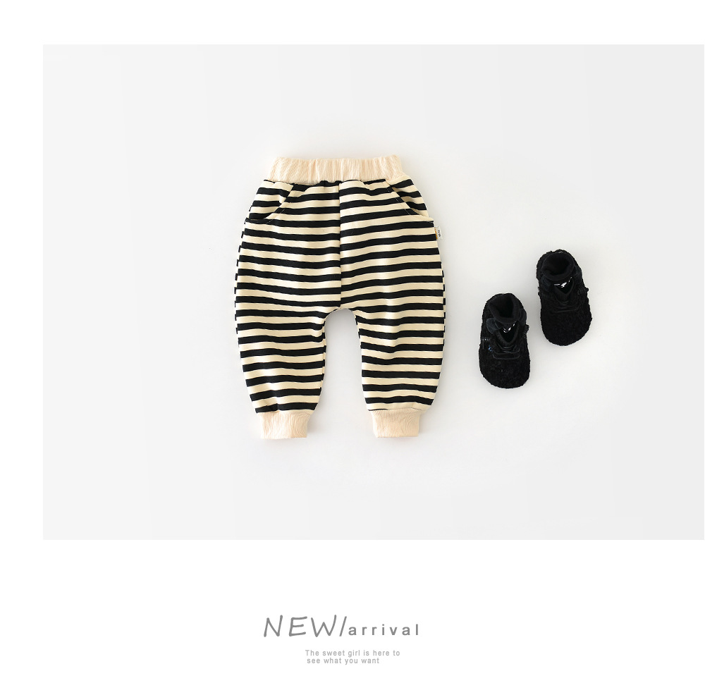 아기의 바지 가을과 겨울 아기의 한국 스타일 큰 PP 바지 기모 만화 줄무늬 한 조각 양털 외부 바지 소년 소녀를위한 바지스토어 가기