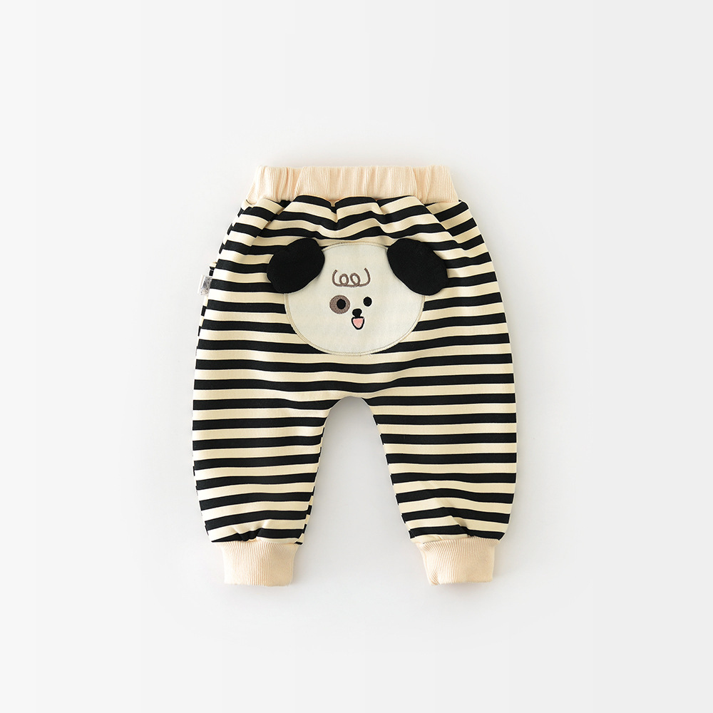아기의 바지 가을과 겨울 아기의 한국 스타일 큰 PP 바지 기모 만화 줄무늬 한 조각 양털 외부 바지 소년 소녀를위한 바지