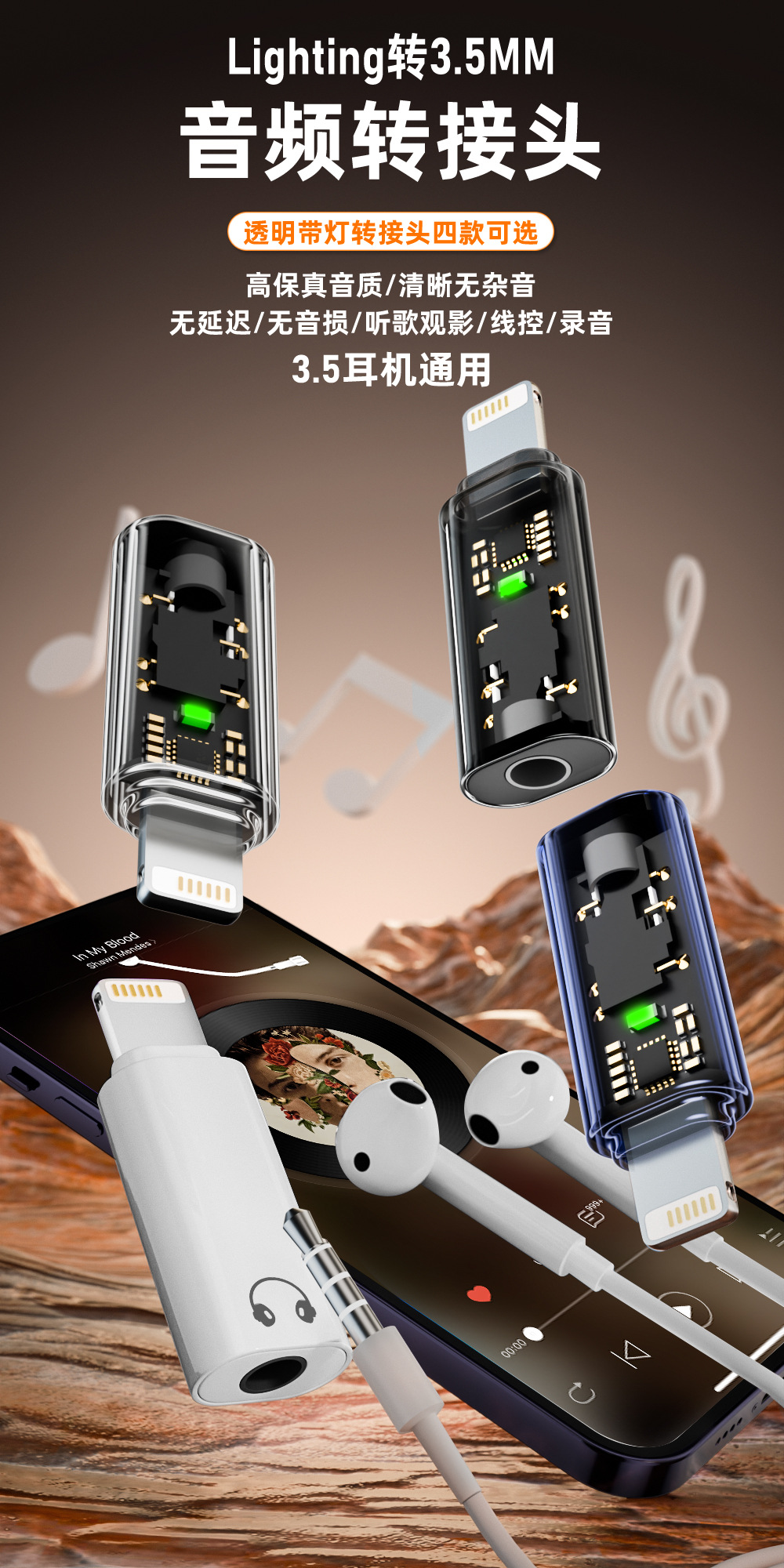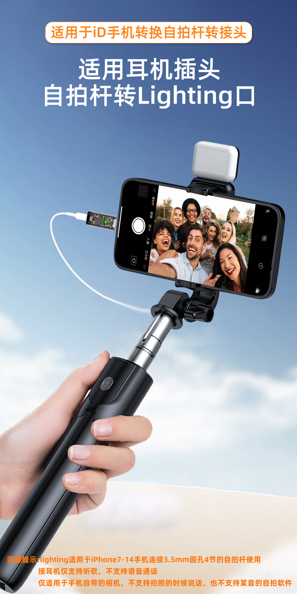 휴대 전화 셀카 스틱 어댑터 충전 인터페이스 컨버터 3.5mm 이어폰 플러그는 번개 남성에 적합합니다.스토어 가기
