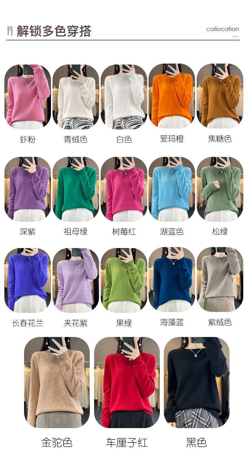 첫 번째 라인 Readymade 의류 가을과 겨울 100 순수 모직 스웨터 여성 크루 넥 풀오버 스웨터베이스 올 매치 슬림 핏 스웨터