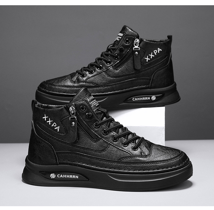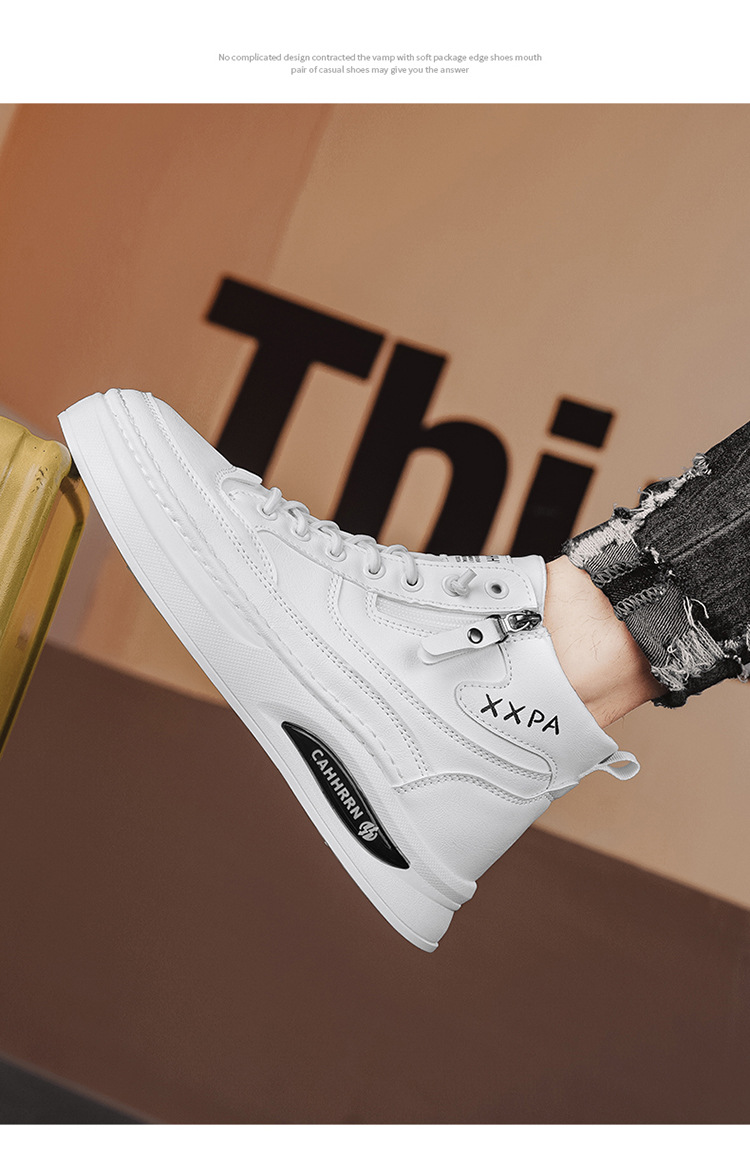 TikTok 폭발 2024 가을 새로운 트렌디 올매치 패션 하이탑 가죽 화이트 신발 한국 남성용 미끄럼 방지 운동화