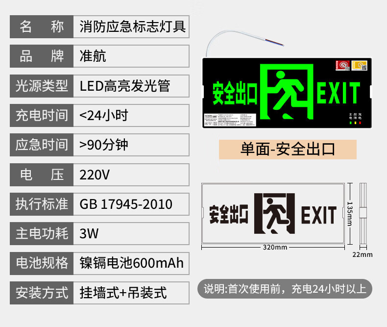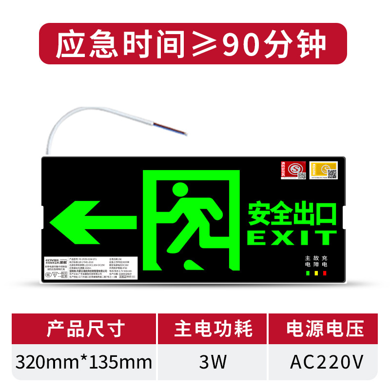 • 표시등 표시 - 안전 출구 - 새로운 국가 표준(≥90분)