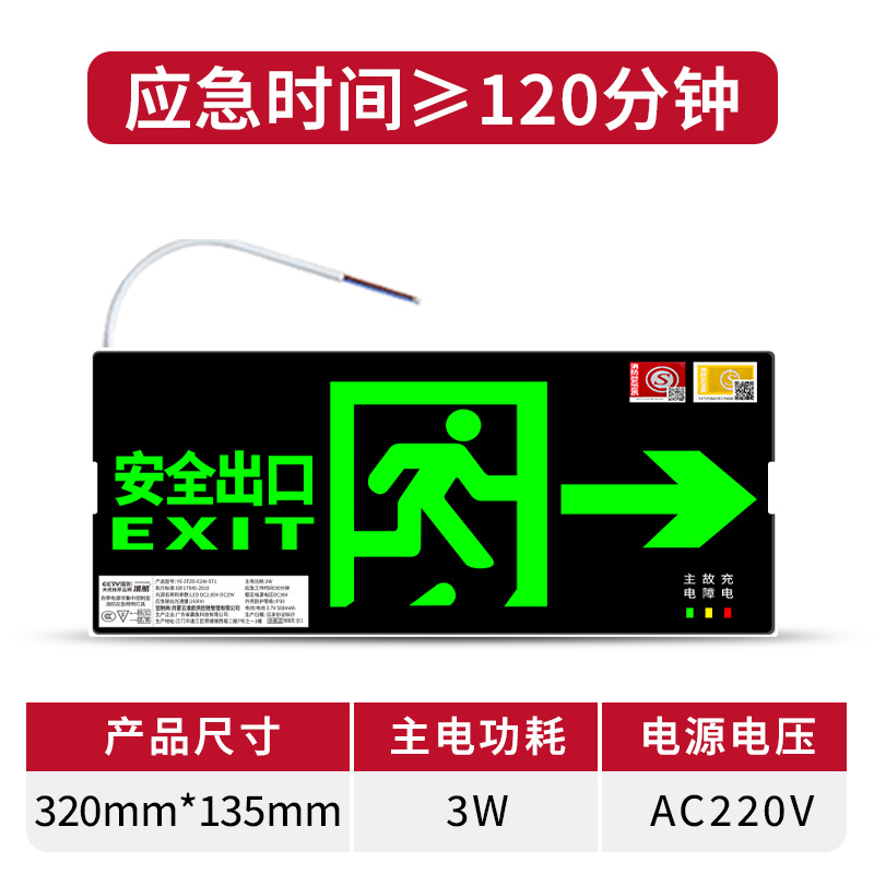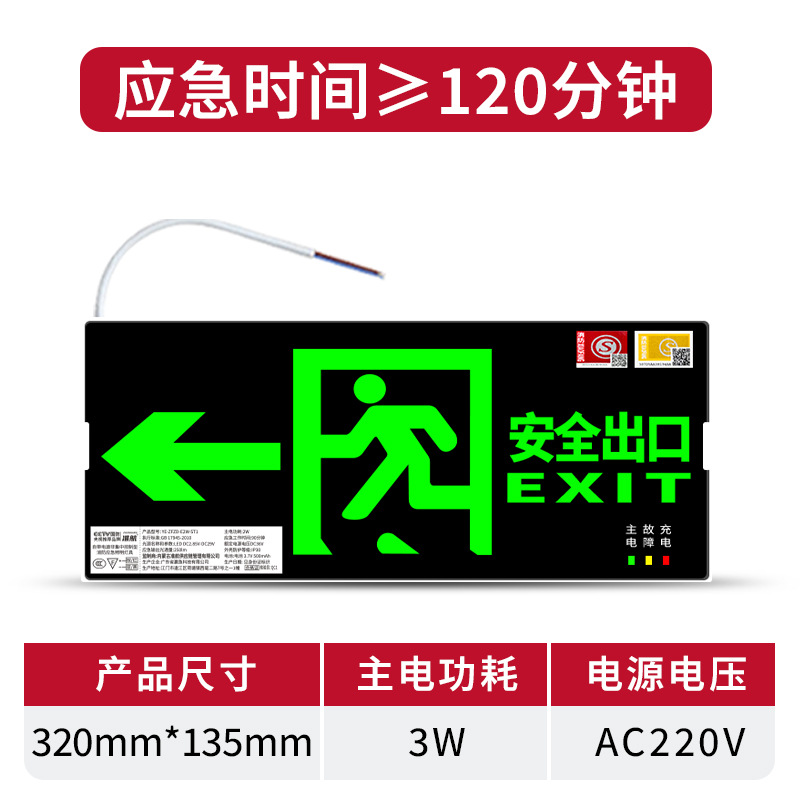 • 표시등 표시 - 안전 출구 - 새로운 국가 표준(≥120분)