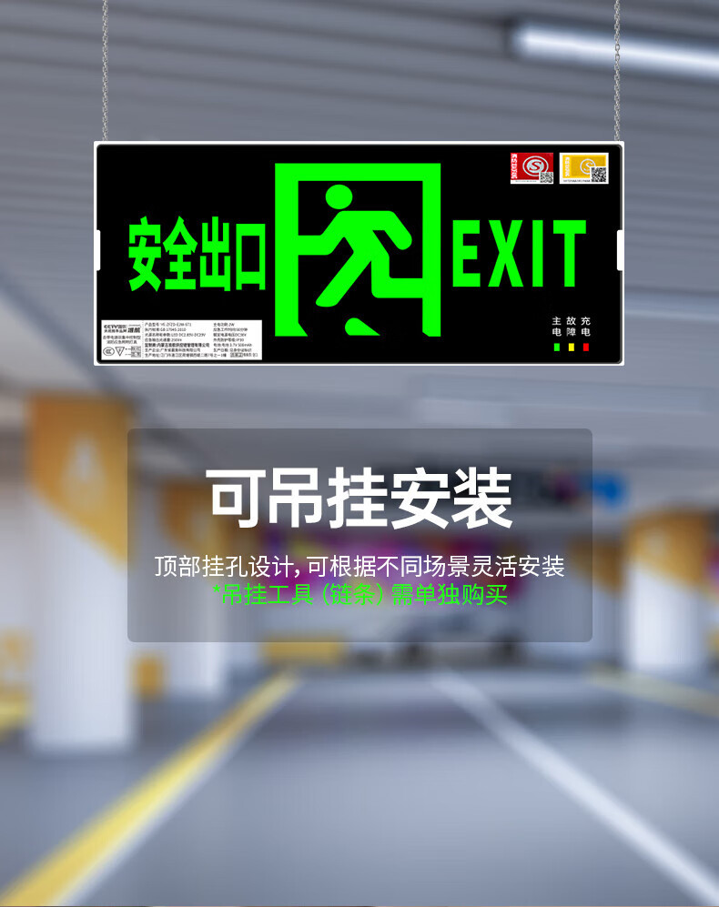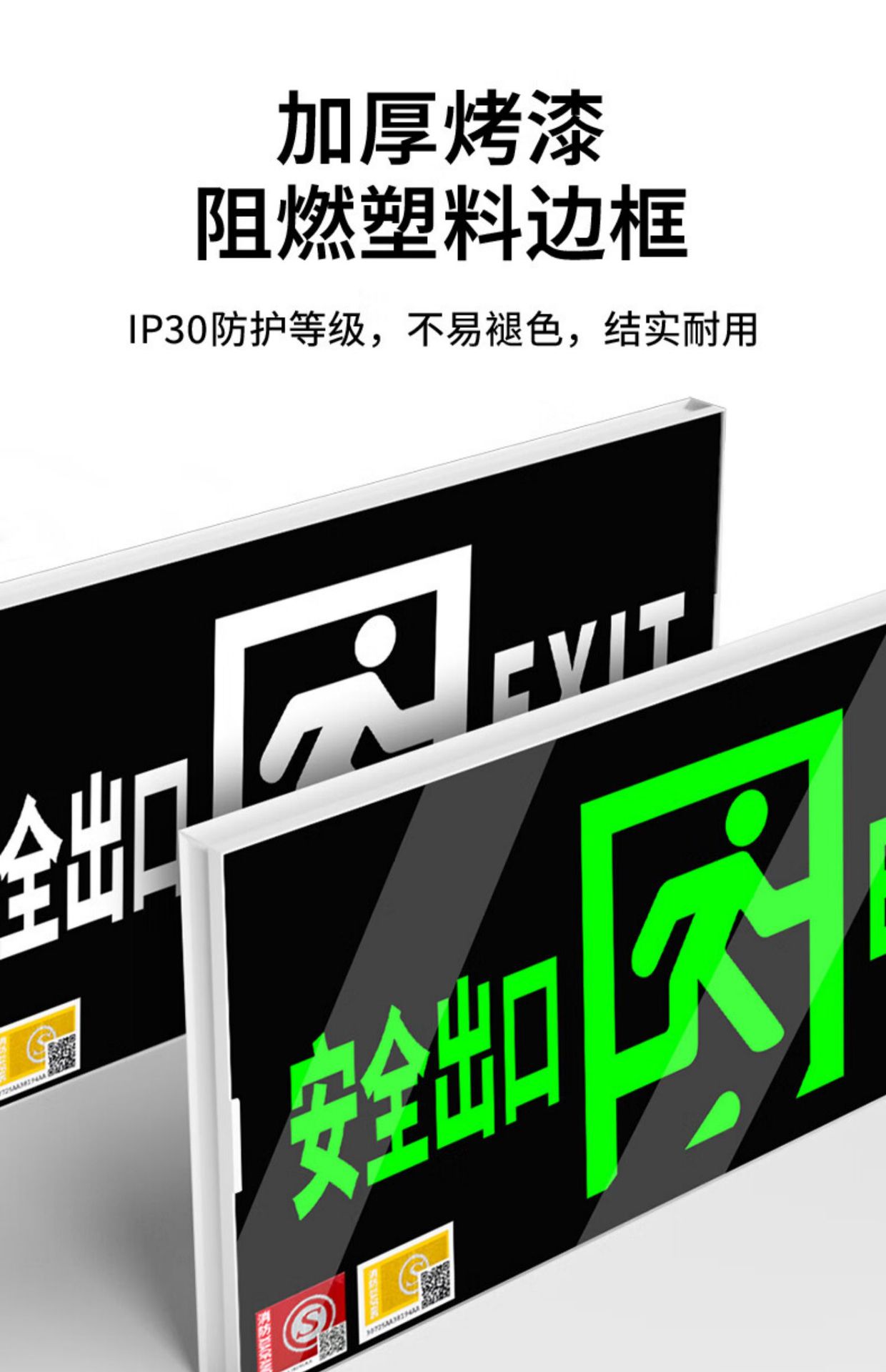 화재 안전 출구 표지판 빛 통로 탈출 배터리 연결 대피 비상 표시 등 화살표