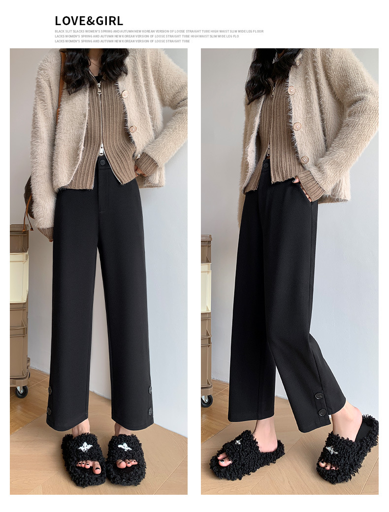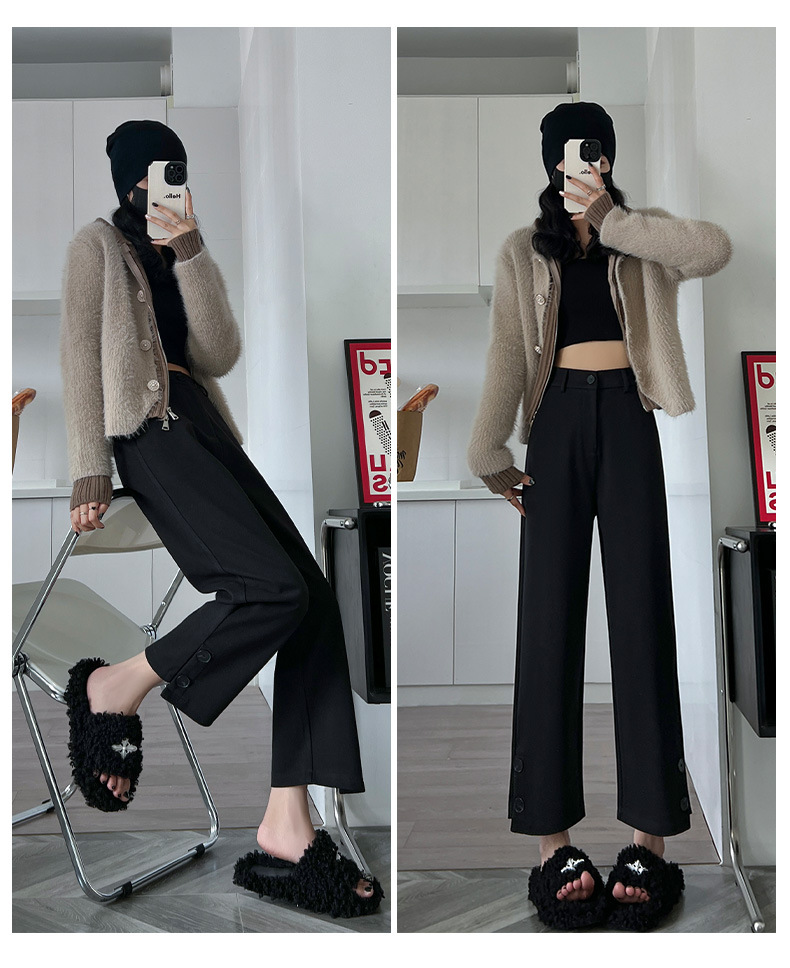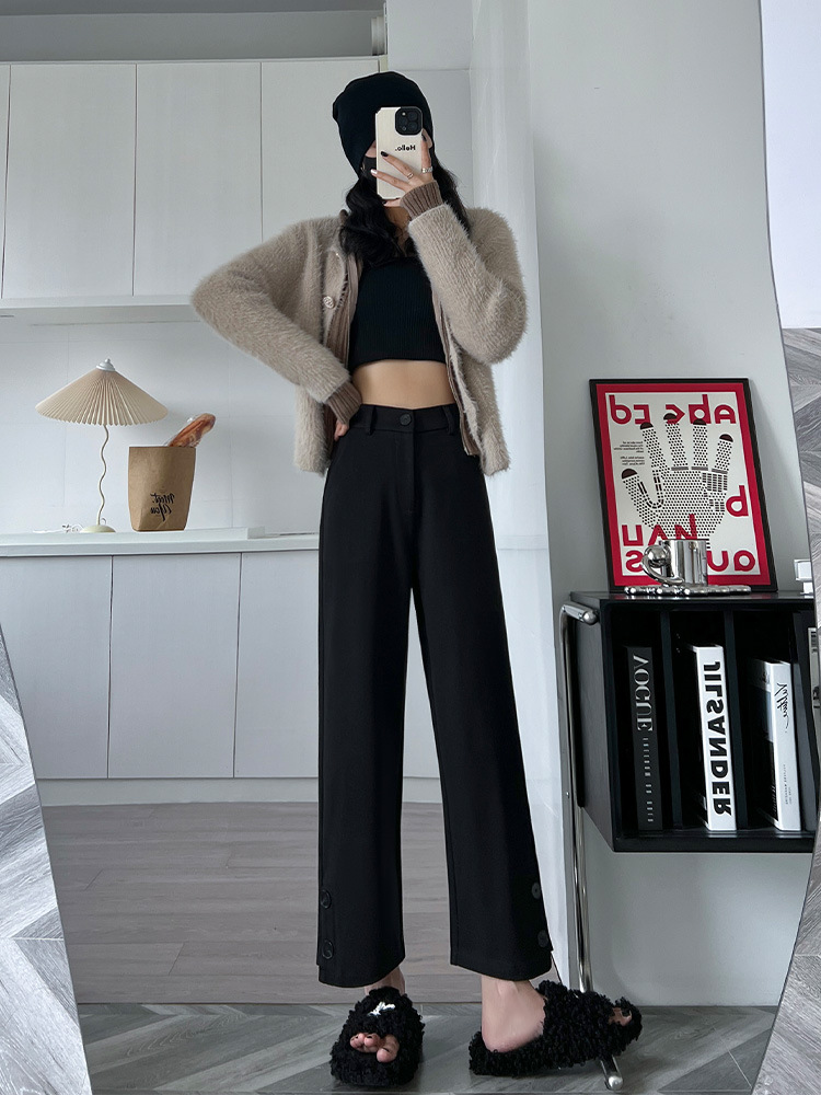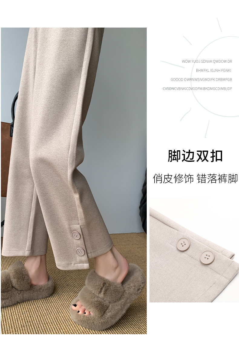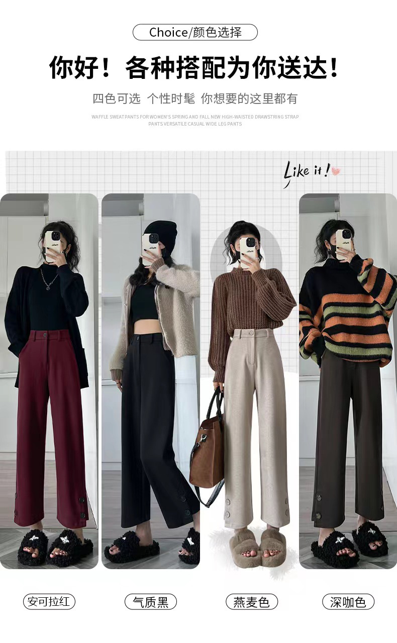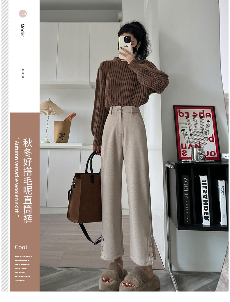 진짜 샷 2024 가을과 겨울 빨간 양모 자른 스트레이트 바지 작은 높은 허리 슬리밍 캐주얼 느슨한 넓은 다리 바지스토어 가기