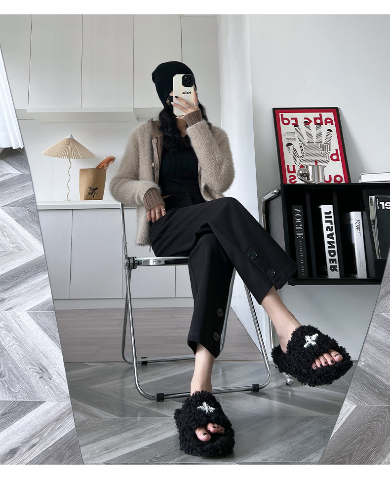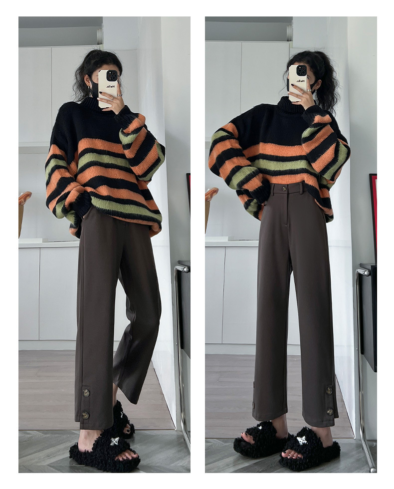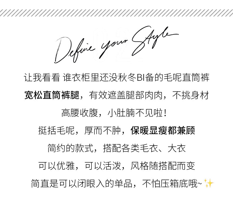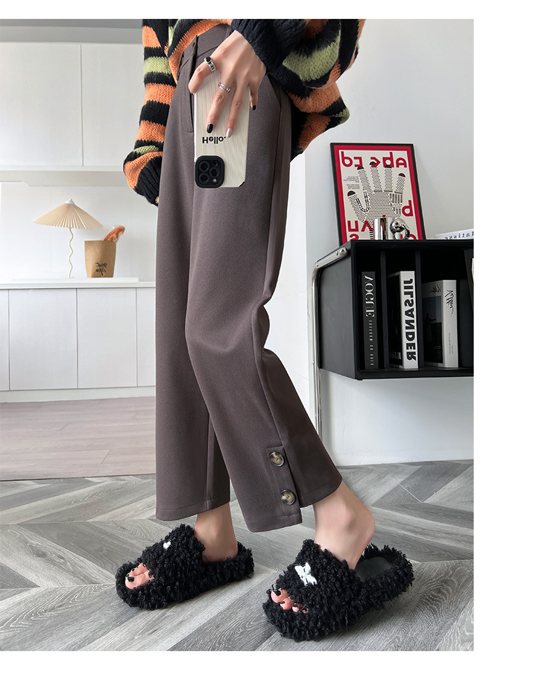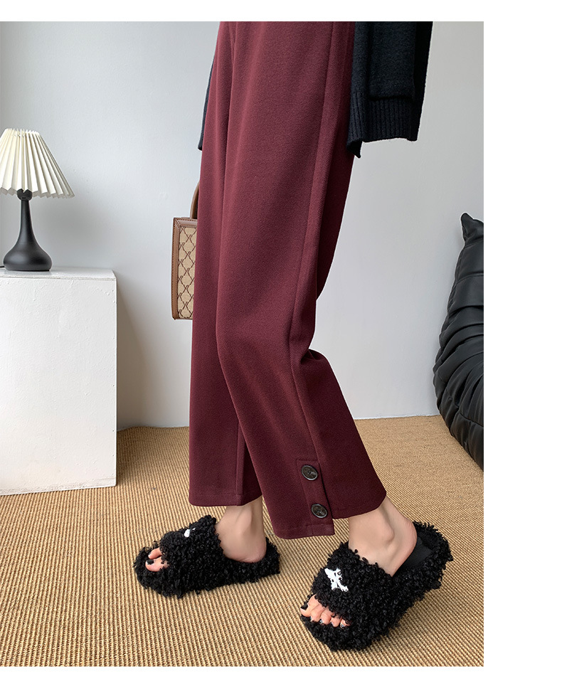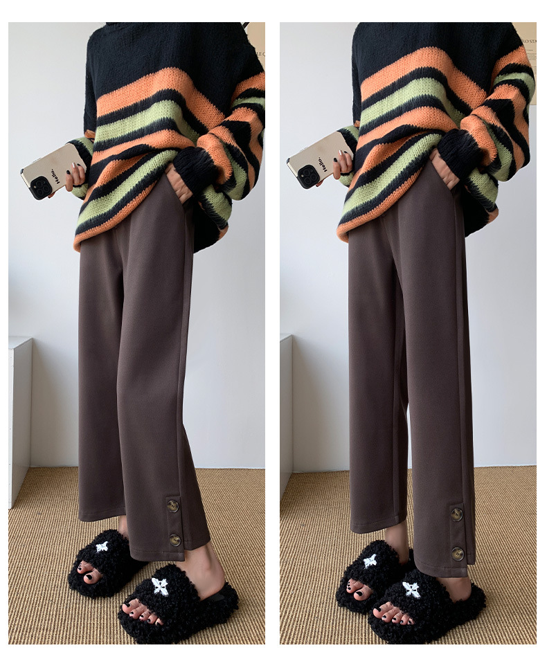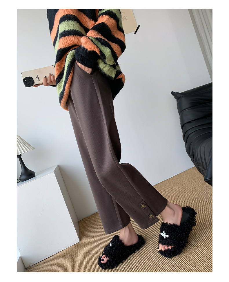 진짜 샷 2024 가을과 겨울 빨간 양모 자른 스트레이트 바지 작은 높은 허리 슬리밍 캐주얼 느슨한 넓은 다리 바지스토어 가기