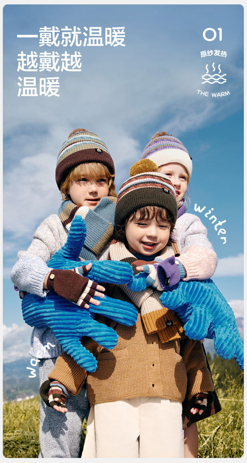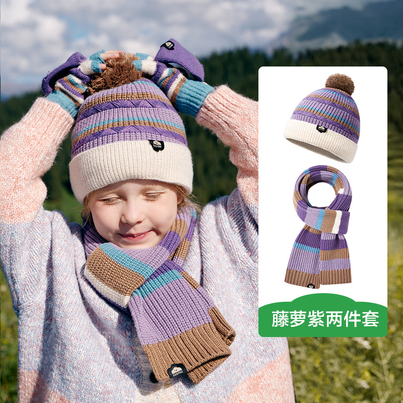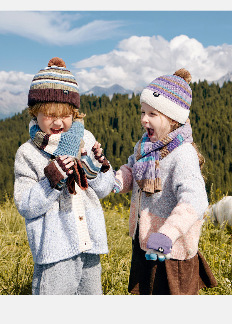 KK 트리 어린이 모자 소년 소녀 니트 모자 아기 가을과 겨울 장갑 스카프 3 피스 세트 부모-자식 귀 보호 따뜻한스토어 가기