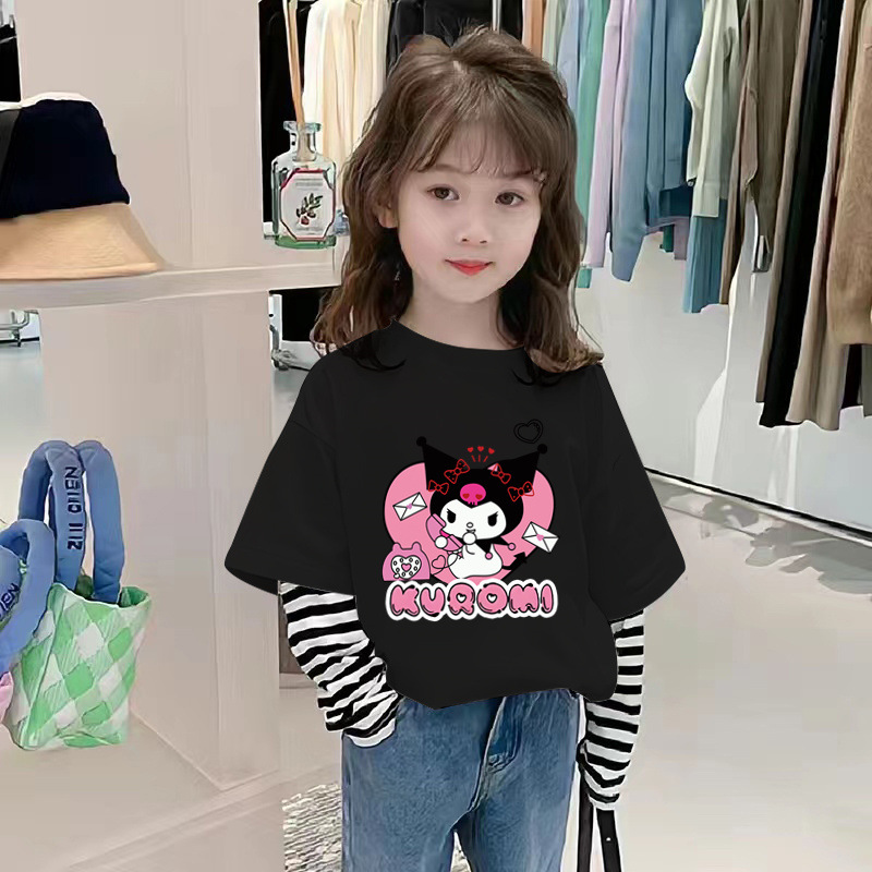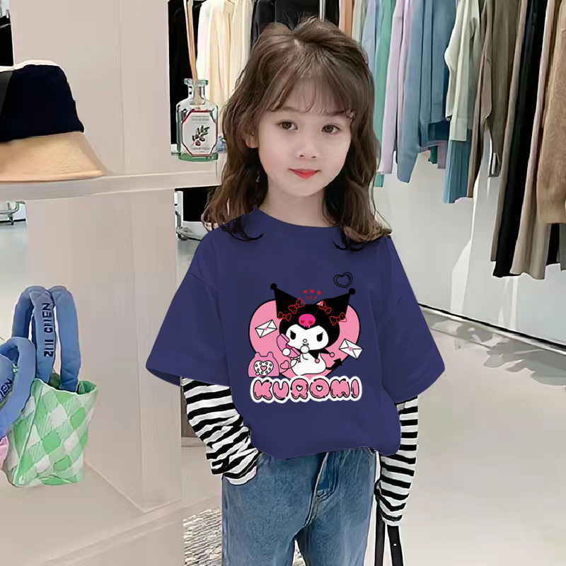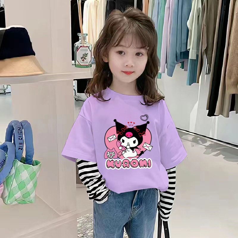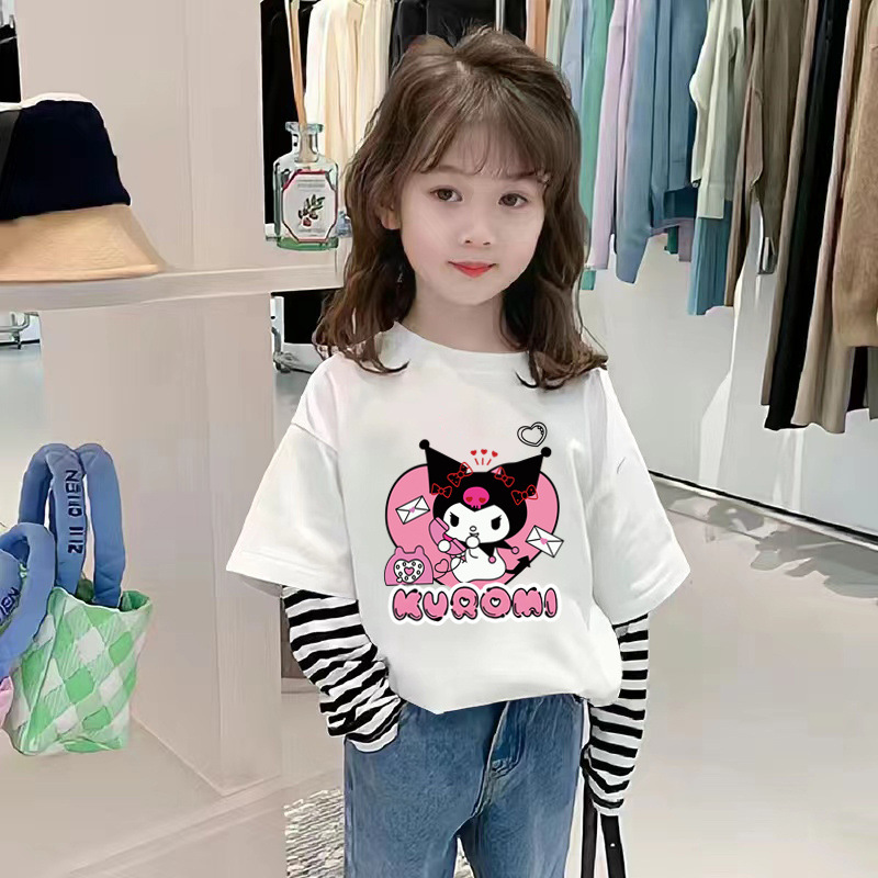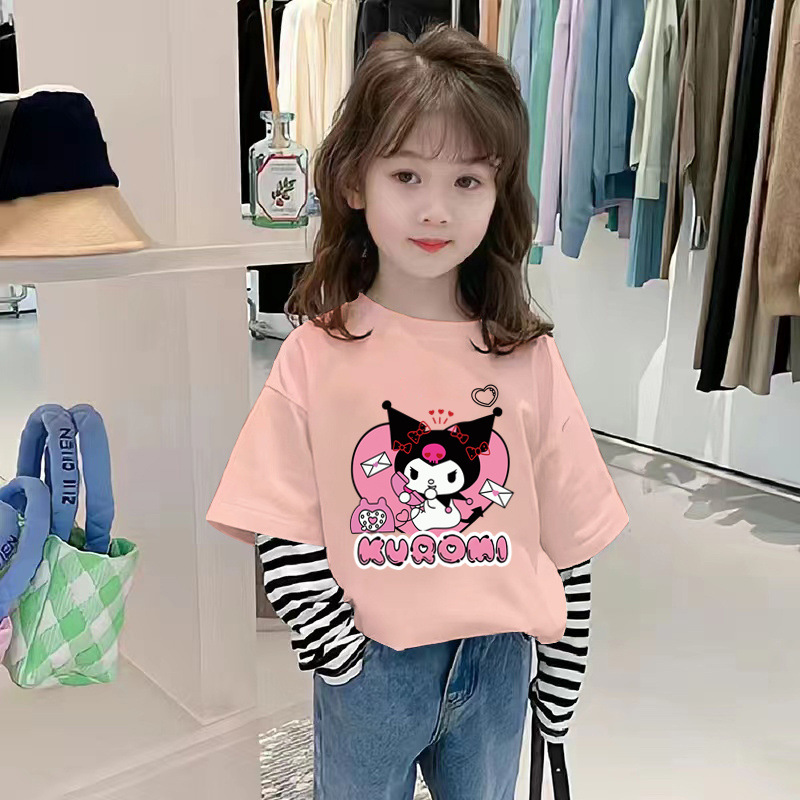 G2332 # girls 'net red kulomi 가짜 투피스 티셔츠 아동면 바닥 셔츠 새로운 외국식 소녀 top T