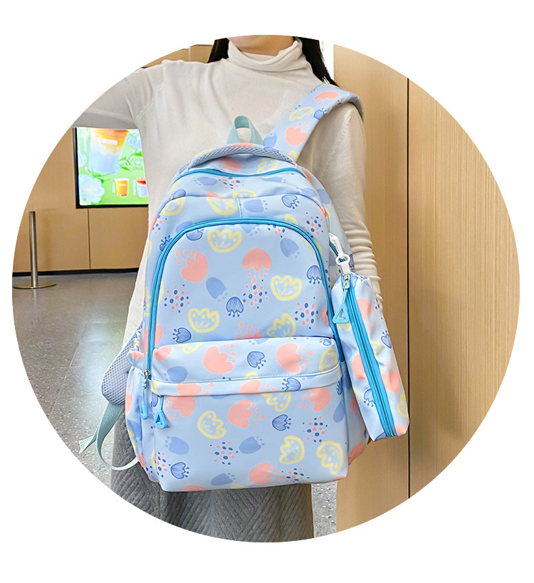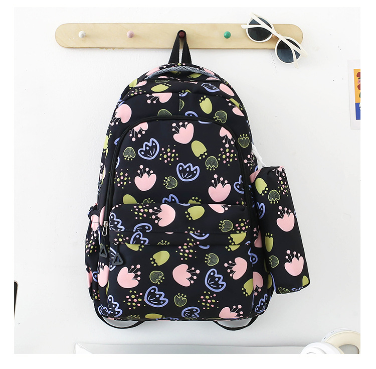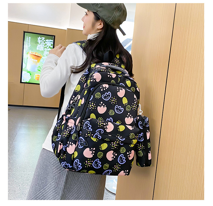 2024 새로운 패션 컬러 낙서 캐주얼 간단한 대용량 배낭 중학교 학생 학교 가방 2 조각 세트스토어 가기