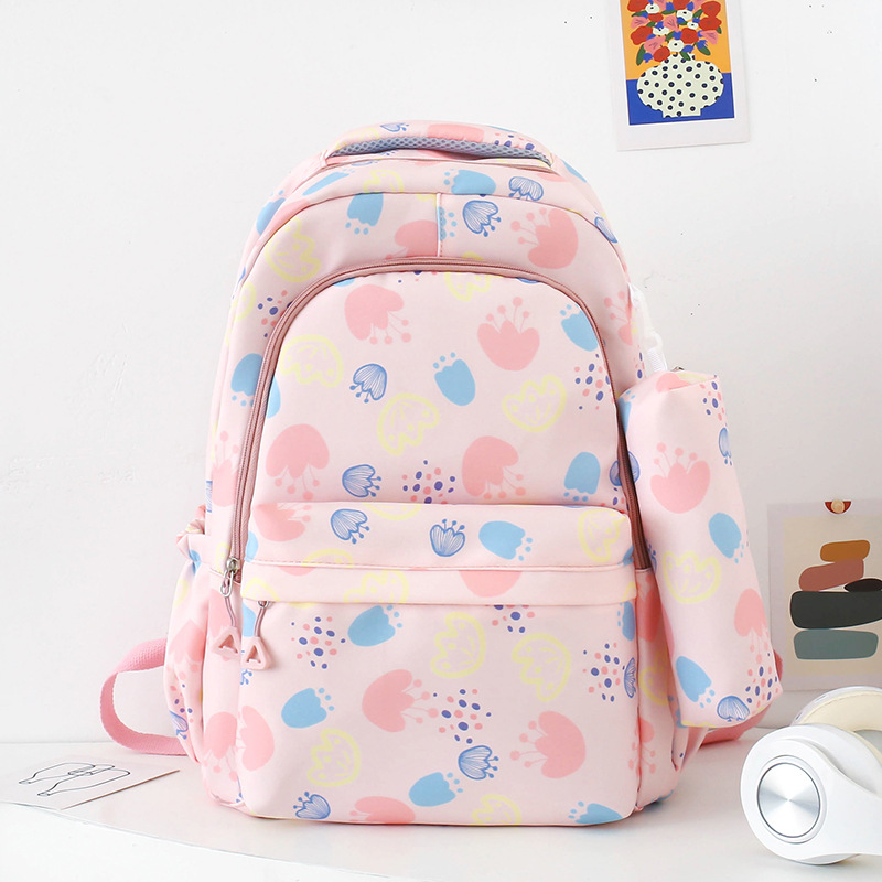 2024 새로운 패션 컬러 낙서 캐주얼 간단한 대용량 배낭 중학교 학생 학교 가방 2 조각 세트