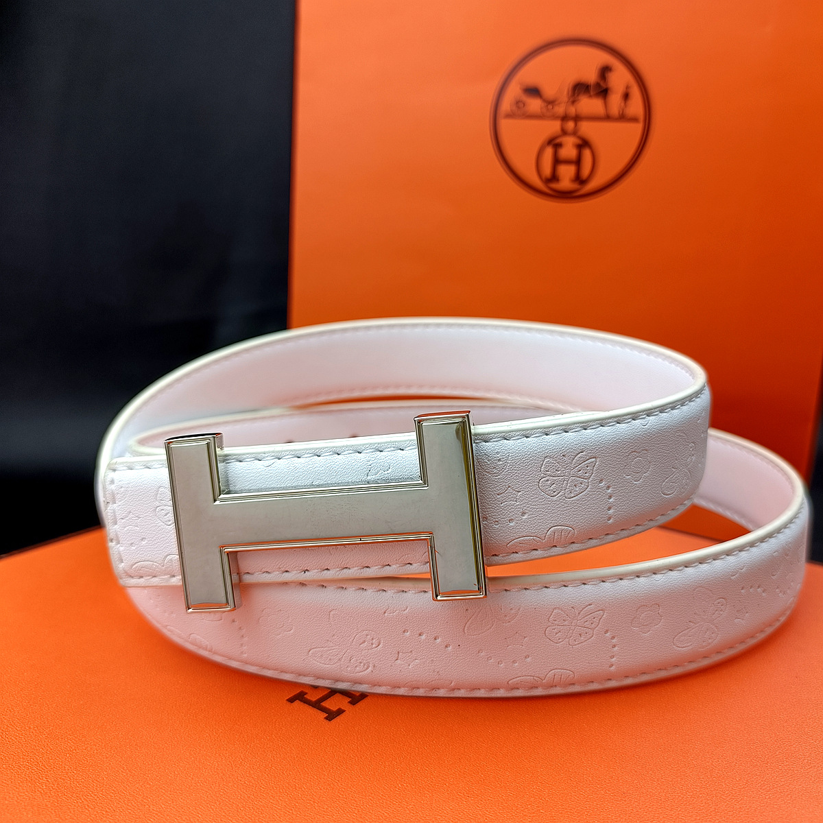 • 나비 화이트 H 골드 버클