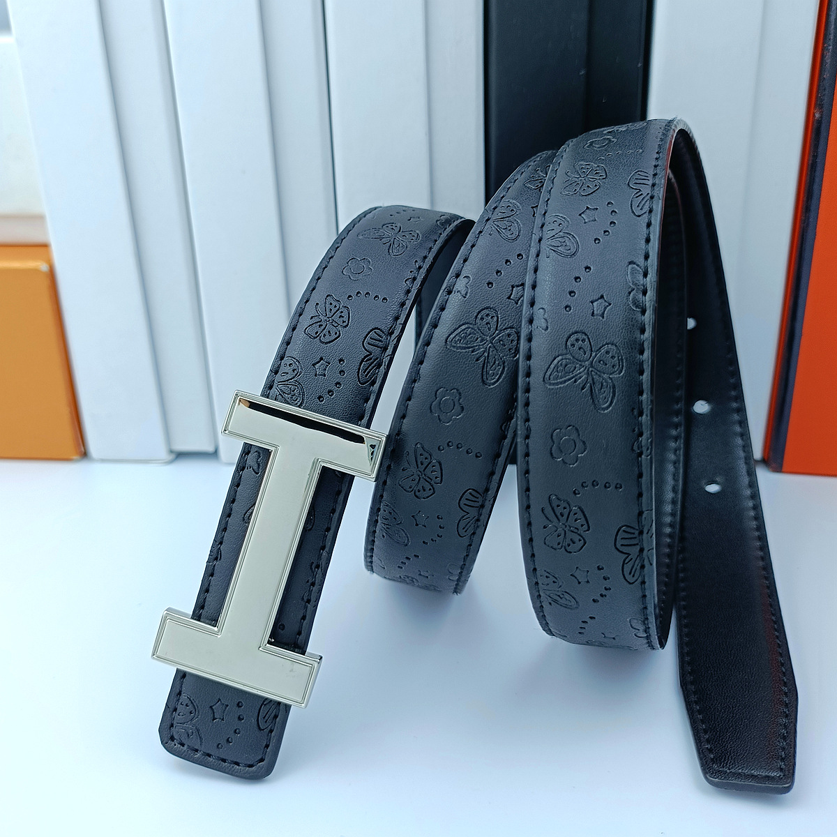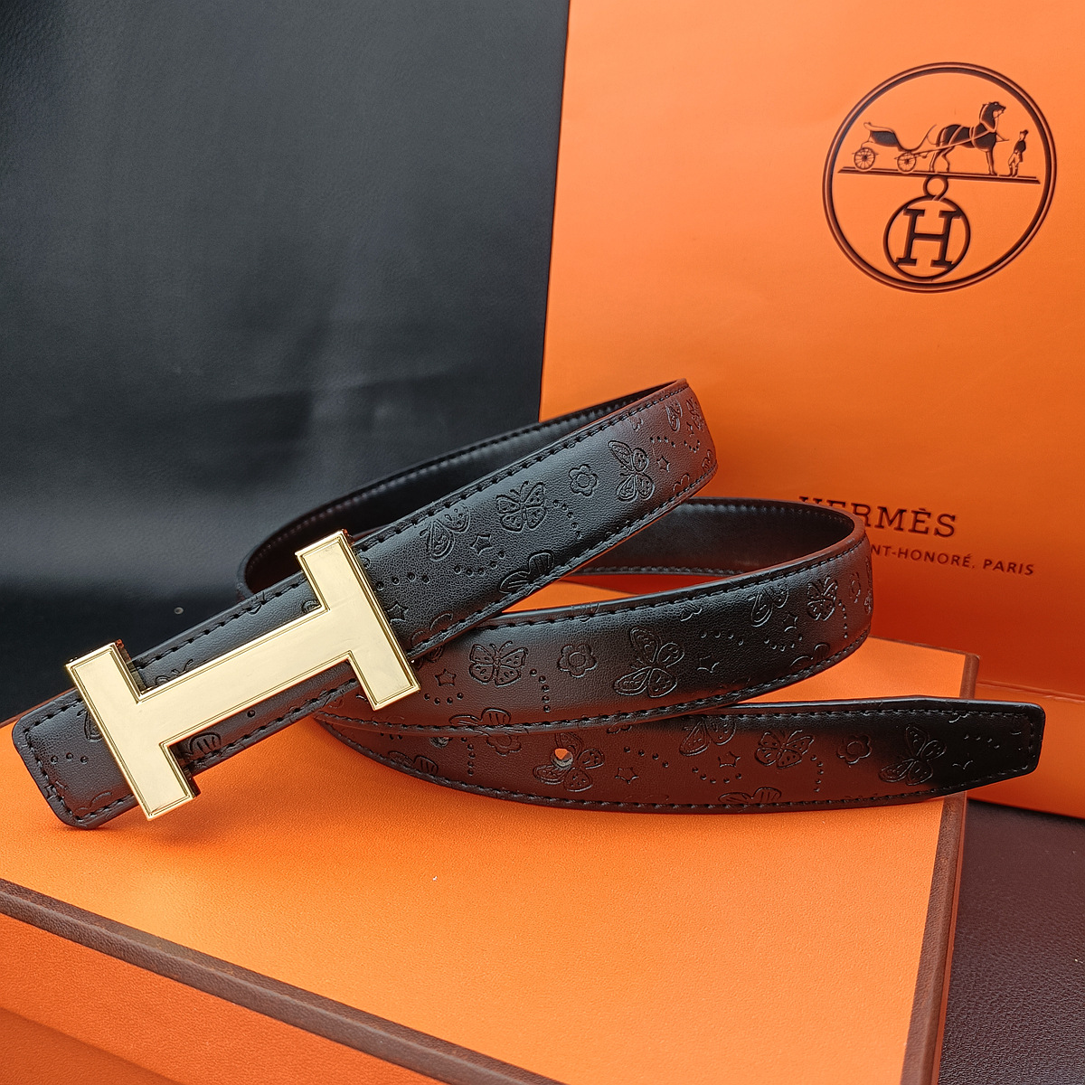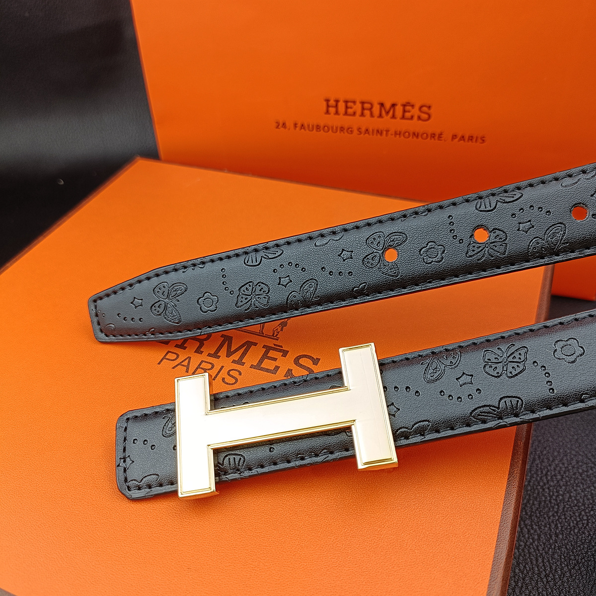 • 나비 블랙 H 골드 버클