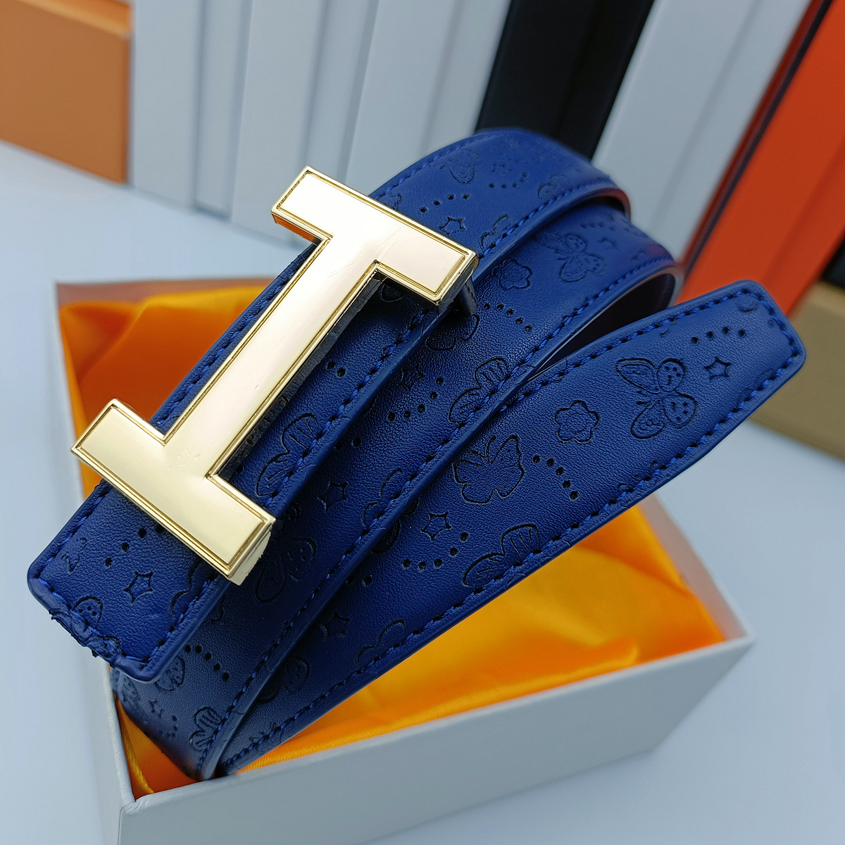 • 나비 블루 H 골드 버클